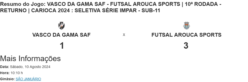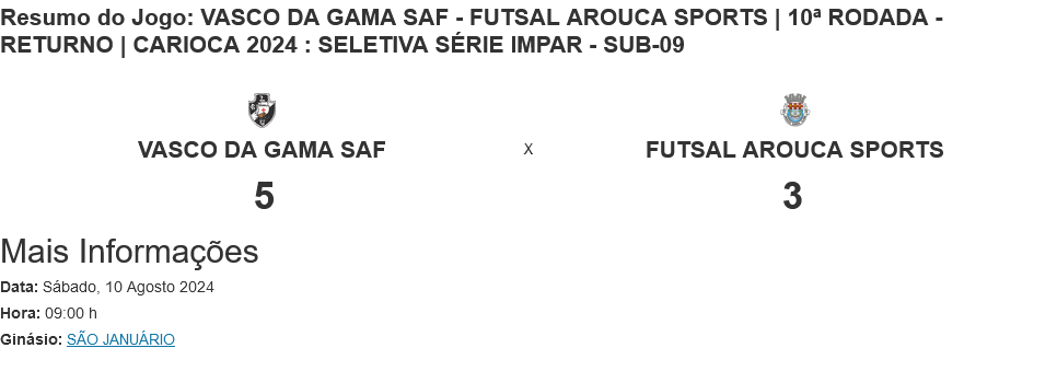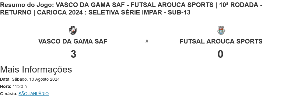 Futsal Base: Vasco vence o Arouca no Sub-09 e no Sub-13, mas perde no Sub-11 pela Seletiva do Carioca