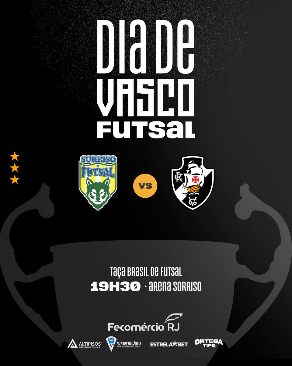 Futsal: Vasco enfrenta o Sorriso-MT nesta 4ª-feira às 19h30 pela Taça Brasil com Bandsports e Youtube