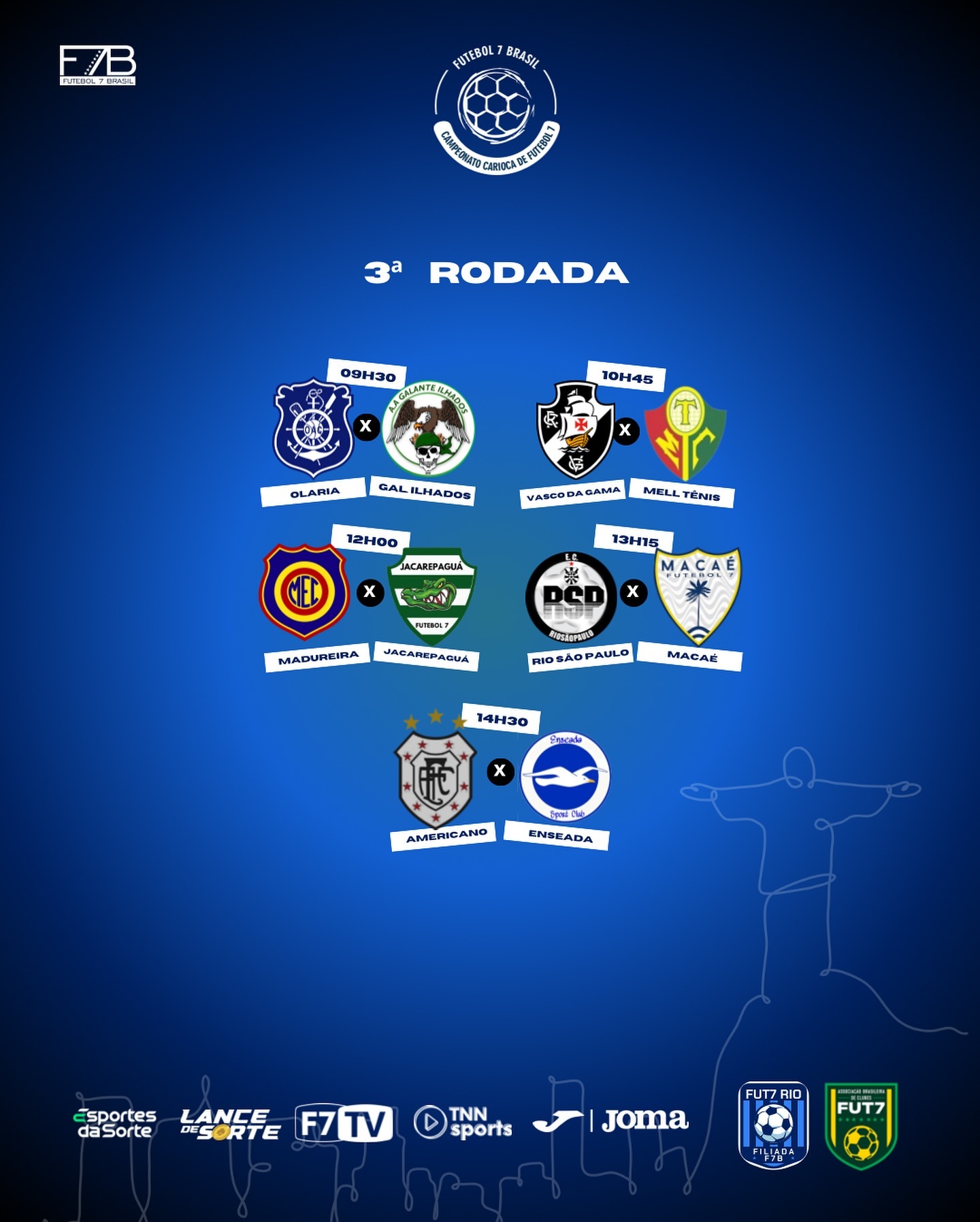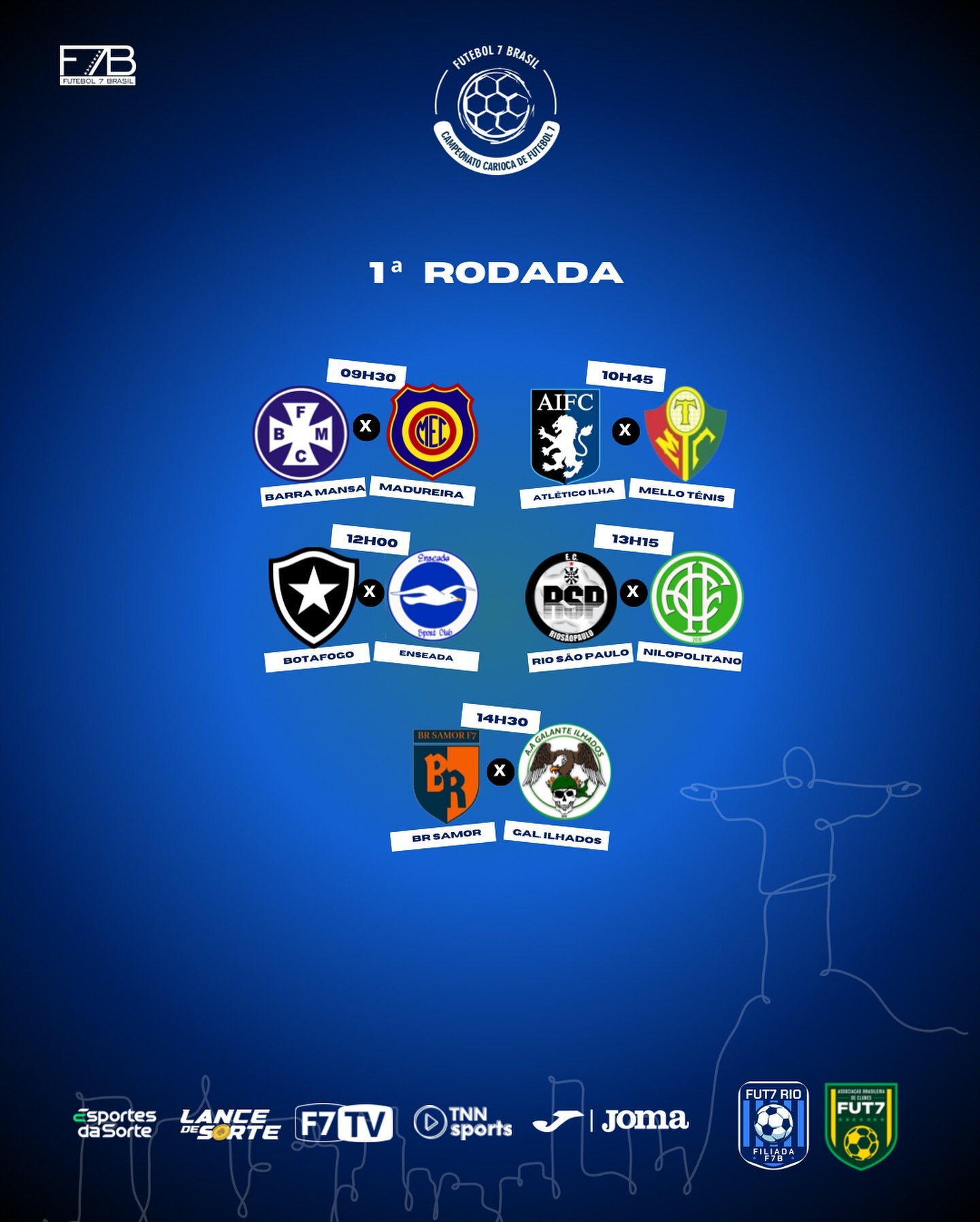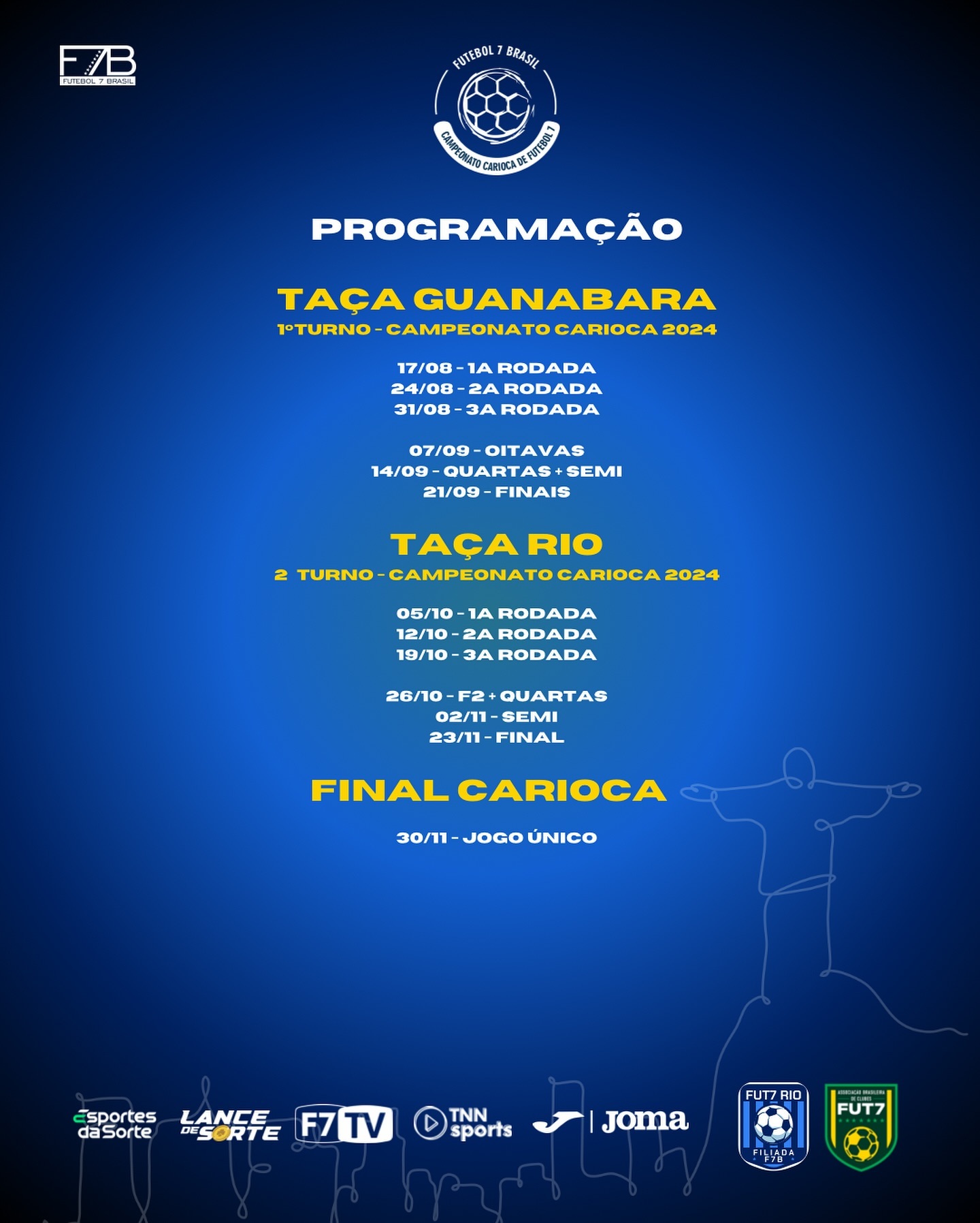 Confira a programação completa do Campeonato Carioca de Futebol 7 - 2024. Neste sábado a bola rola para o pontapé inicial do campeonato estadual mais charmoso do país. Todos os jogos transmitidos ao vivo na F7 TV Play.