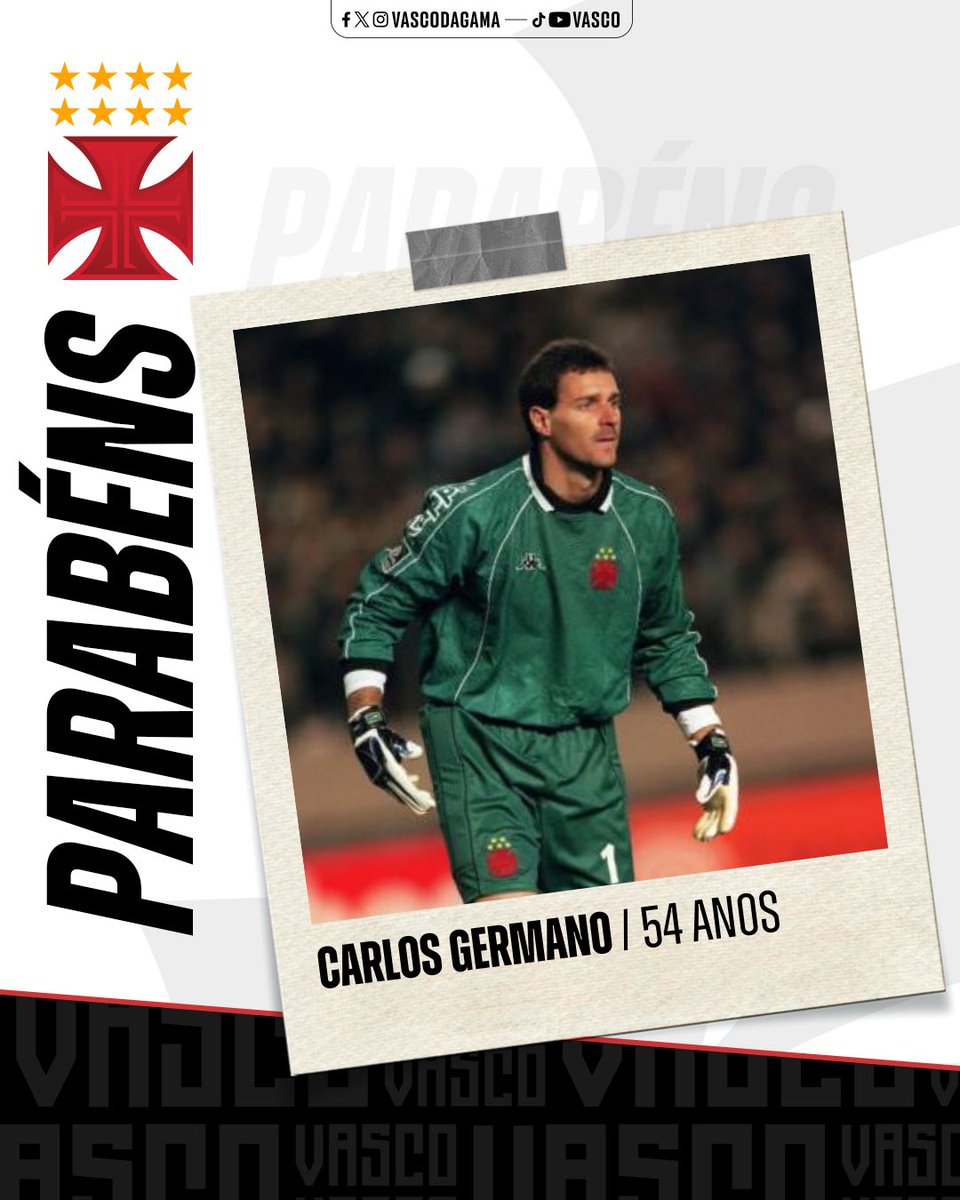 14 de agosto é dia de celebrar a vida de Carlos Germano, um dos maiores goleiros da história do Vasco, que completa 54 anos! 🥳