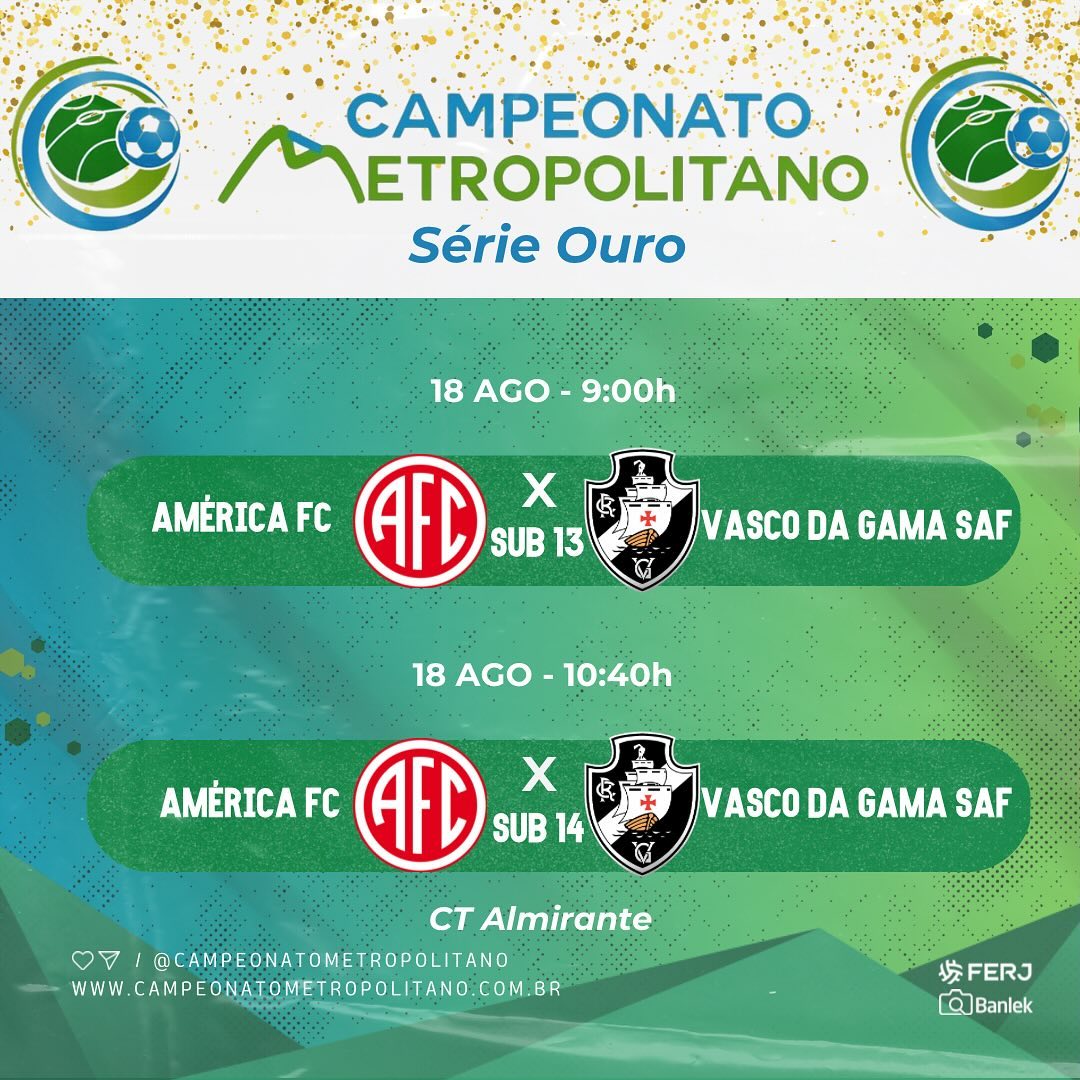 Vasco recebe o America pela Taça Rio no Sub-13 e no Sub-14 neste domingo