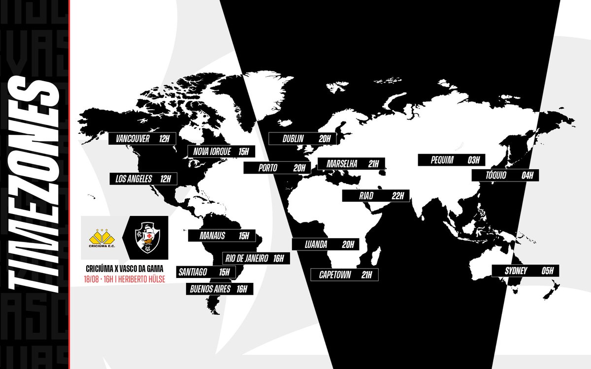 ⏰🌎 Criciúma, Rio de Janeiro, Marselha, Pequim... de onde você irá acompanhar o Vascão hoje?!