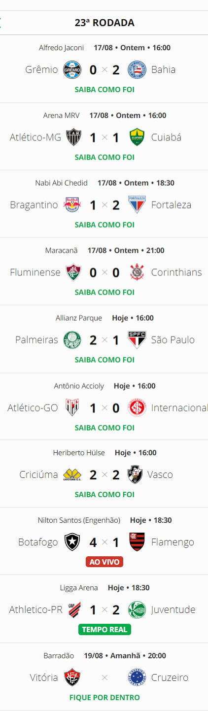 Fonte: NETVASCO (texto), Sofascore (classificação), ge (resultados)