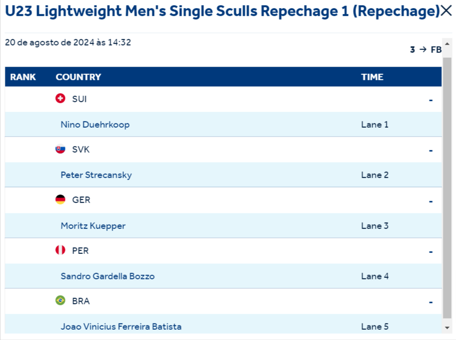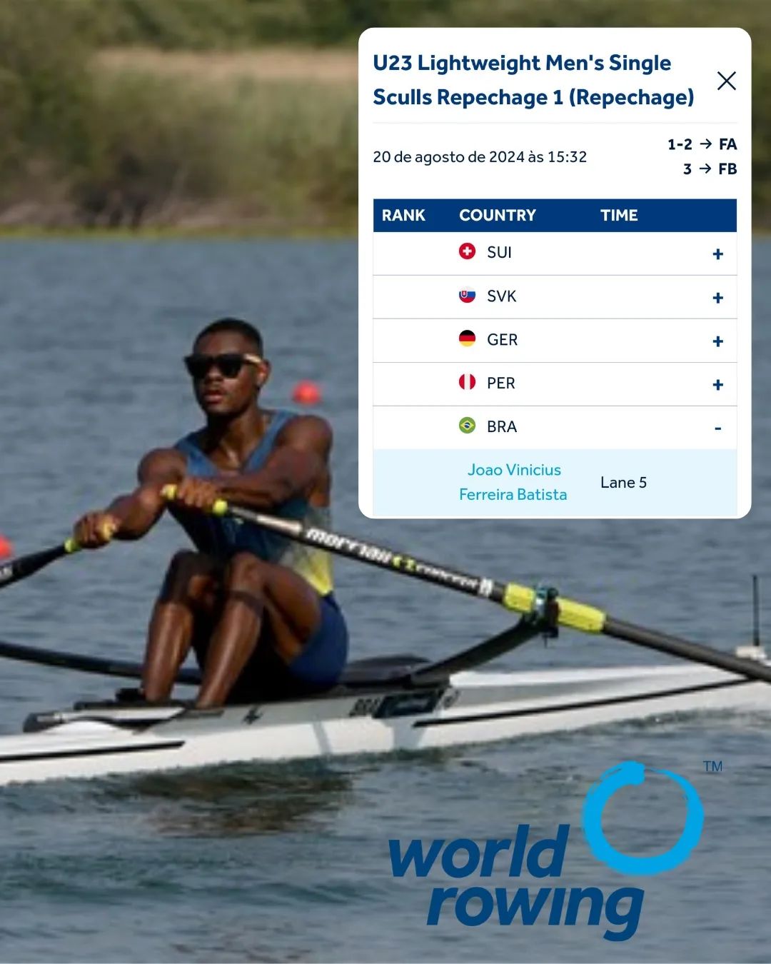 Hoje as 15:32 teremos a repescagem do João no Mundial de Remo.