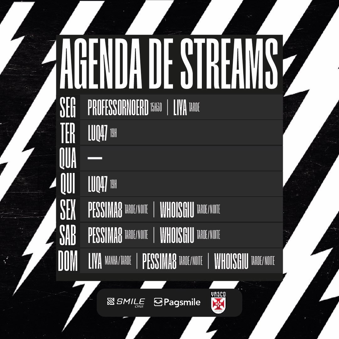 Opa, olha ela aí, a agenda semanal de streams la na Twitch do Vascão