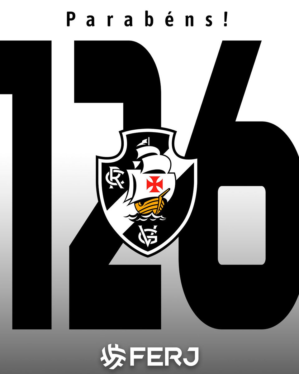 Parabéns ao @VascodaGama. São 126 anos de uma história linda e conquistas dentro e fora de campo. É o Gigante da Colina. A FERJ felicita a diretoria, funcionários e os milhões de torcedores de Norte a Sul deste país 🥳 🎂 👏