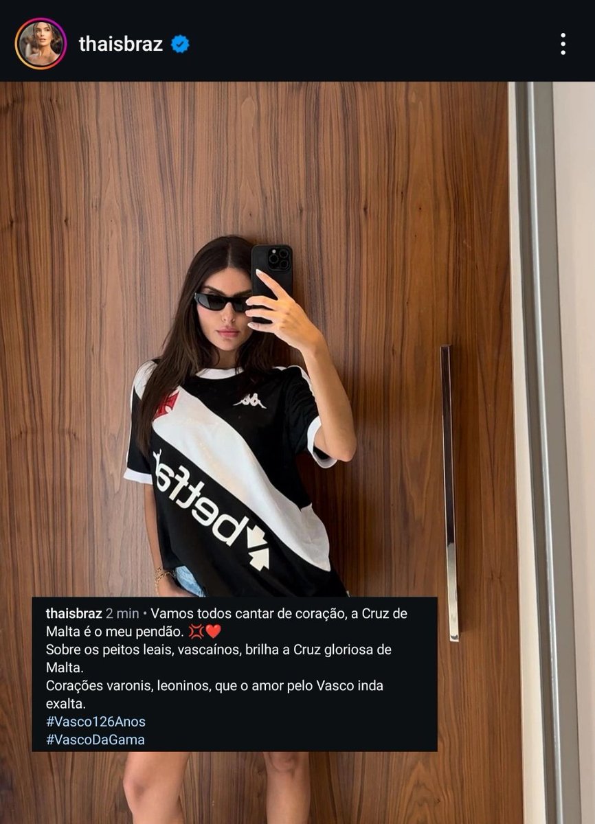 Thais Braz, do BBB 21, parabenizou o Vasco em seu Instagram.