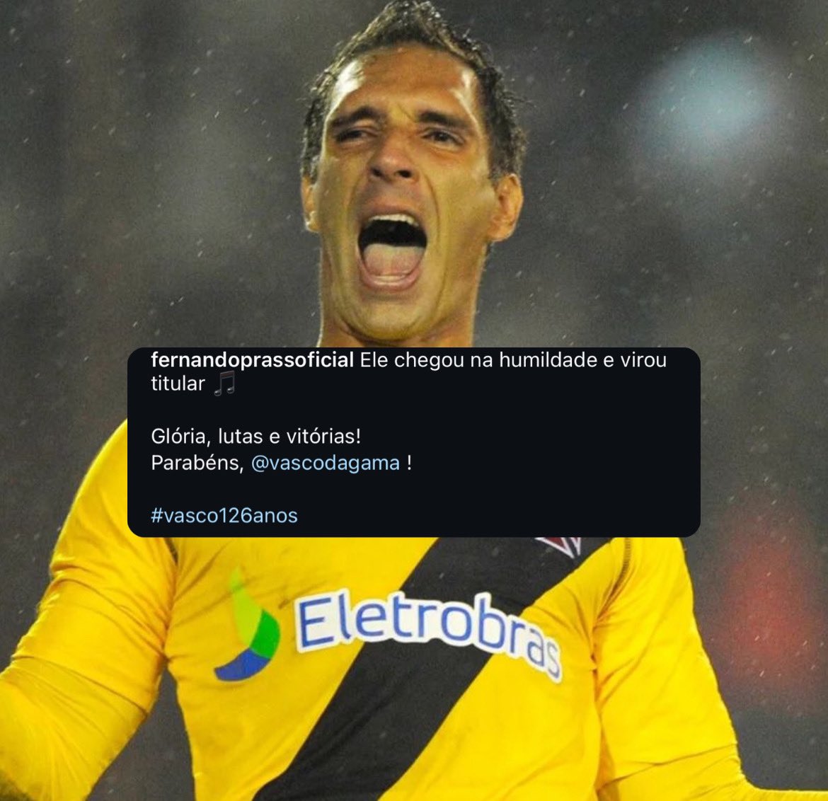 Parabéns CRVG pelos 126 anos da história mais bonita do futebol brasileiro ! Sou eternamente grato a tudo que este clube fez por mim ! Nem nos meus melhores sonhos imagina viver o que vivi dentro do vasco ! Hoje dia 21 de agosto e' seu aniversário mais quem ganhou o presente fui eu ! Jogar ao lado do Roberto dinamite e fazer gol num Maracanã lotado com a camisa do vasco foi a maior honra que tive em toda a minha vida ! OBRIGADO CLUBE DE REGATAS VASCO DA GAMA