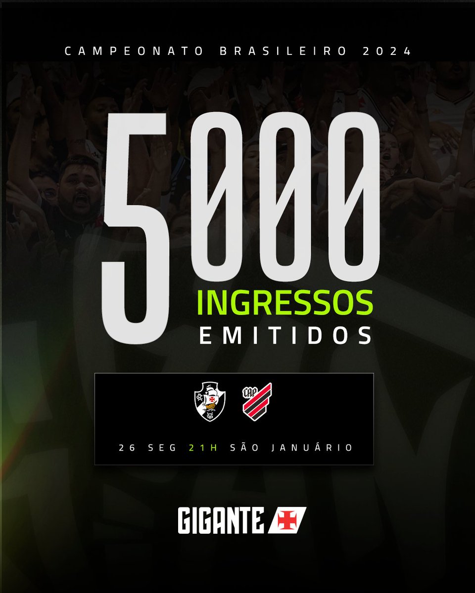Já foram emitidos 5 mil ingressos para Vasco x Athletico-PR, pelo Brasileiro