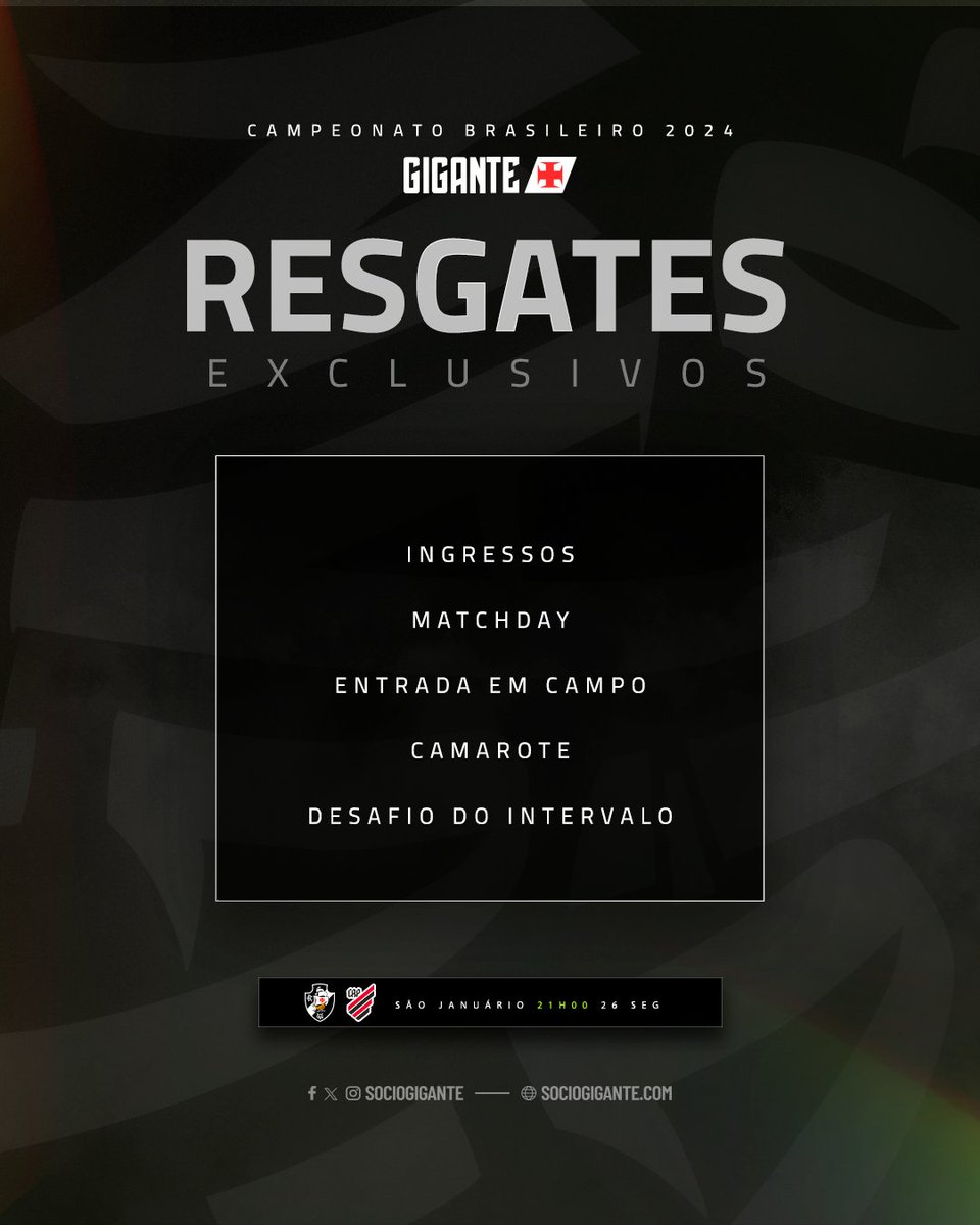 Resgates exclusivos para VASCO DA GAMA x Athletico (PR) pelo Campeonato Brasileiro! 💢