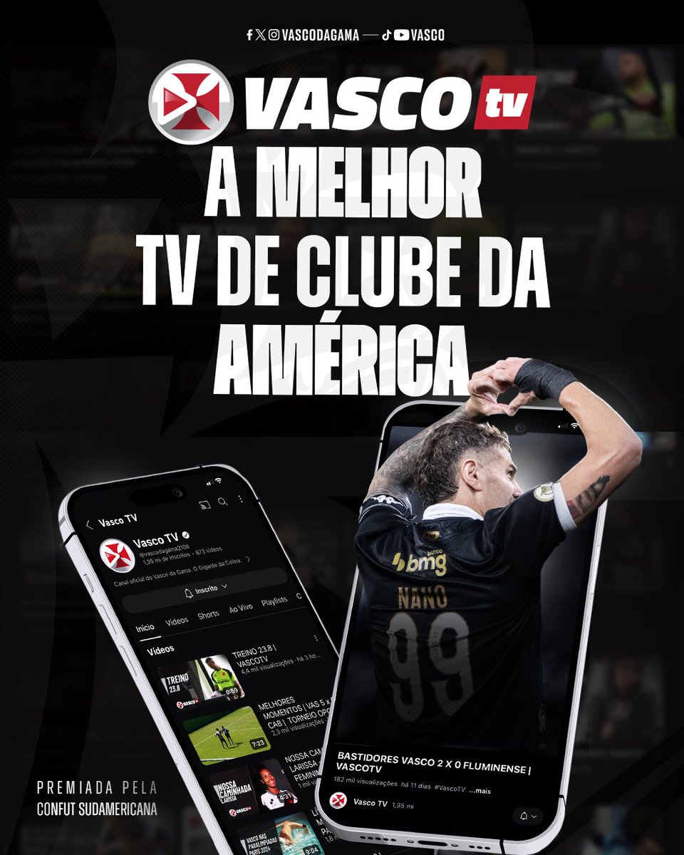 Em premiação realizada pela Confut Sudamericana, concorrendo com BotafogoTV e River Plate, a VascoTV foi eleita vencedora 🏆