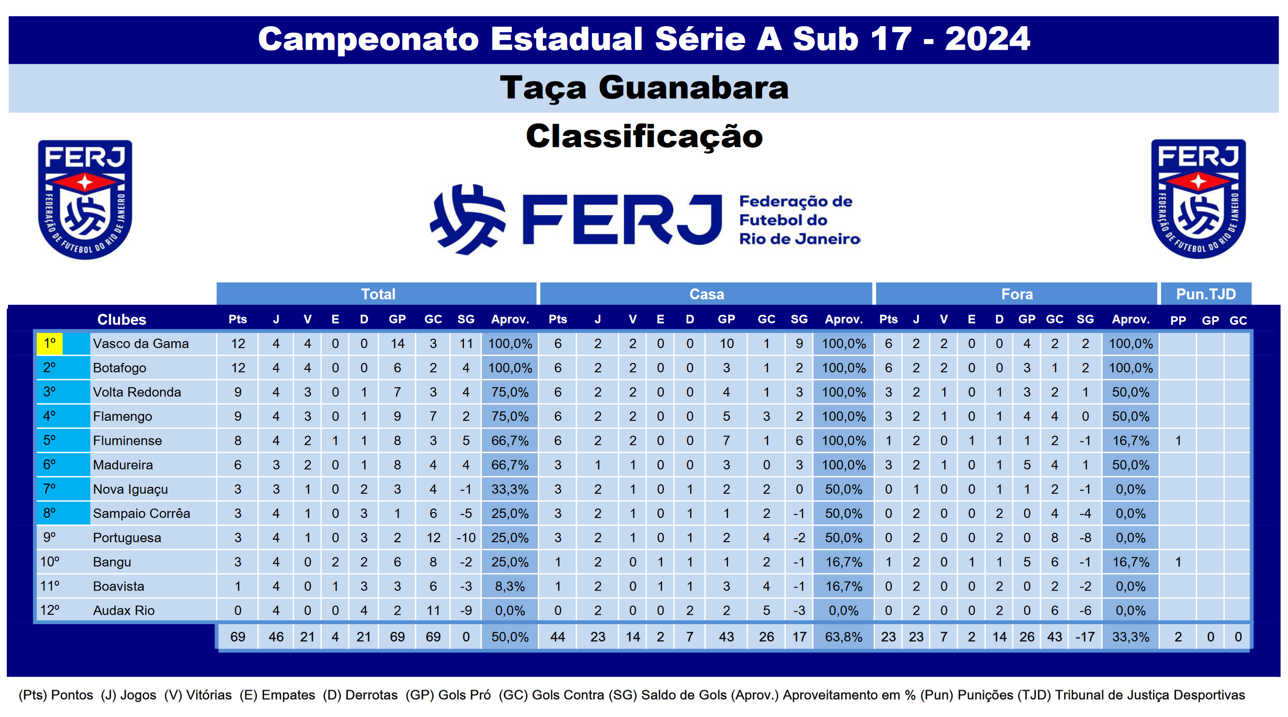 25/08/24 - Sub-15: Com 100% de aproveitamento, Vasco lidera a Taça Guanabara com o Urubu após 4 rodadas