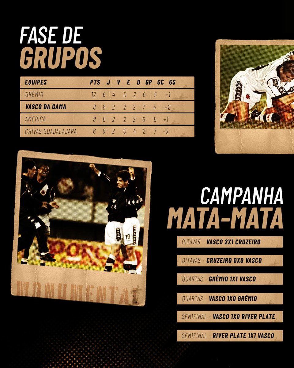 Confira mais detalhes da campanha vascaína rumo ao título da Libertadores da América de 1998!
