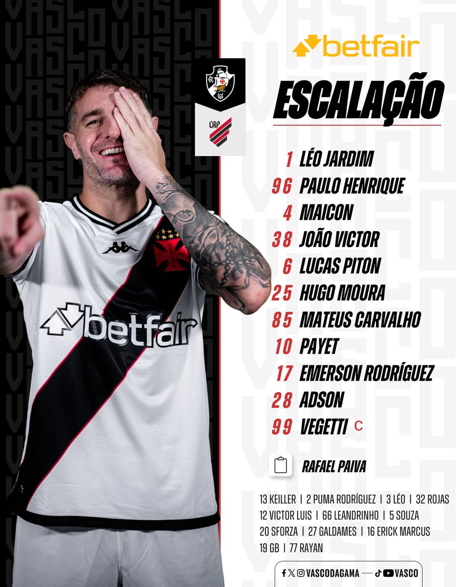 🎥 Confira os onze jogadores titulares e os atletas suplentes para o duelo com o Athletico Paranaense!