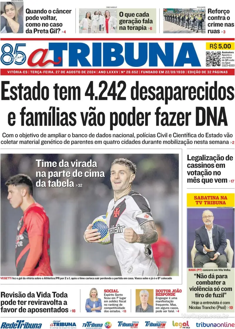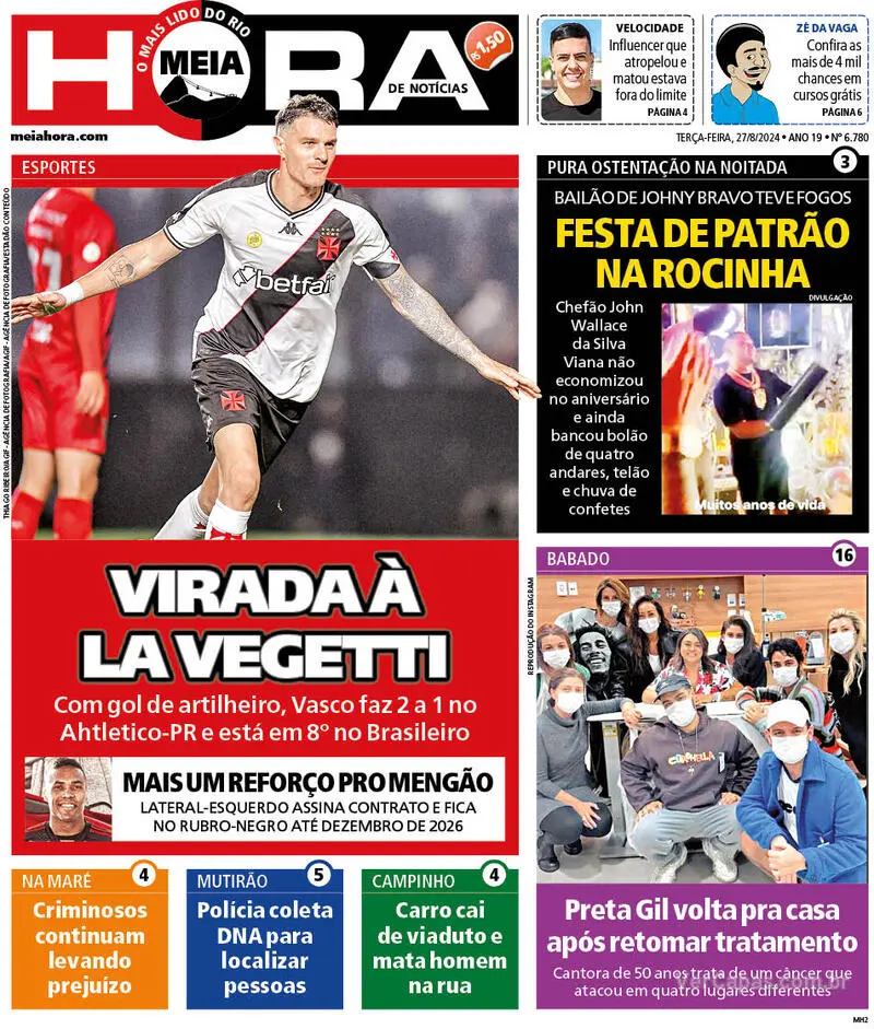 Pelo Campeonato Brasileiro, o Vasco venceu o Athletico-PR por 2 a 1, de virada, em São Januário com gols de Emerson Rodriguez e Vegetti. Veja as capas dos jornais.