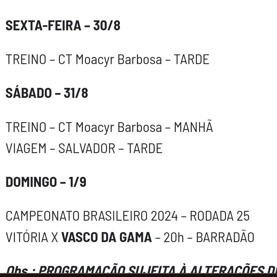 💢 CONFIRA A PROGRAMAÇÃO SEMANAL DO NOSSO VASCÃO!!