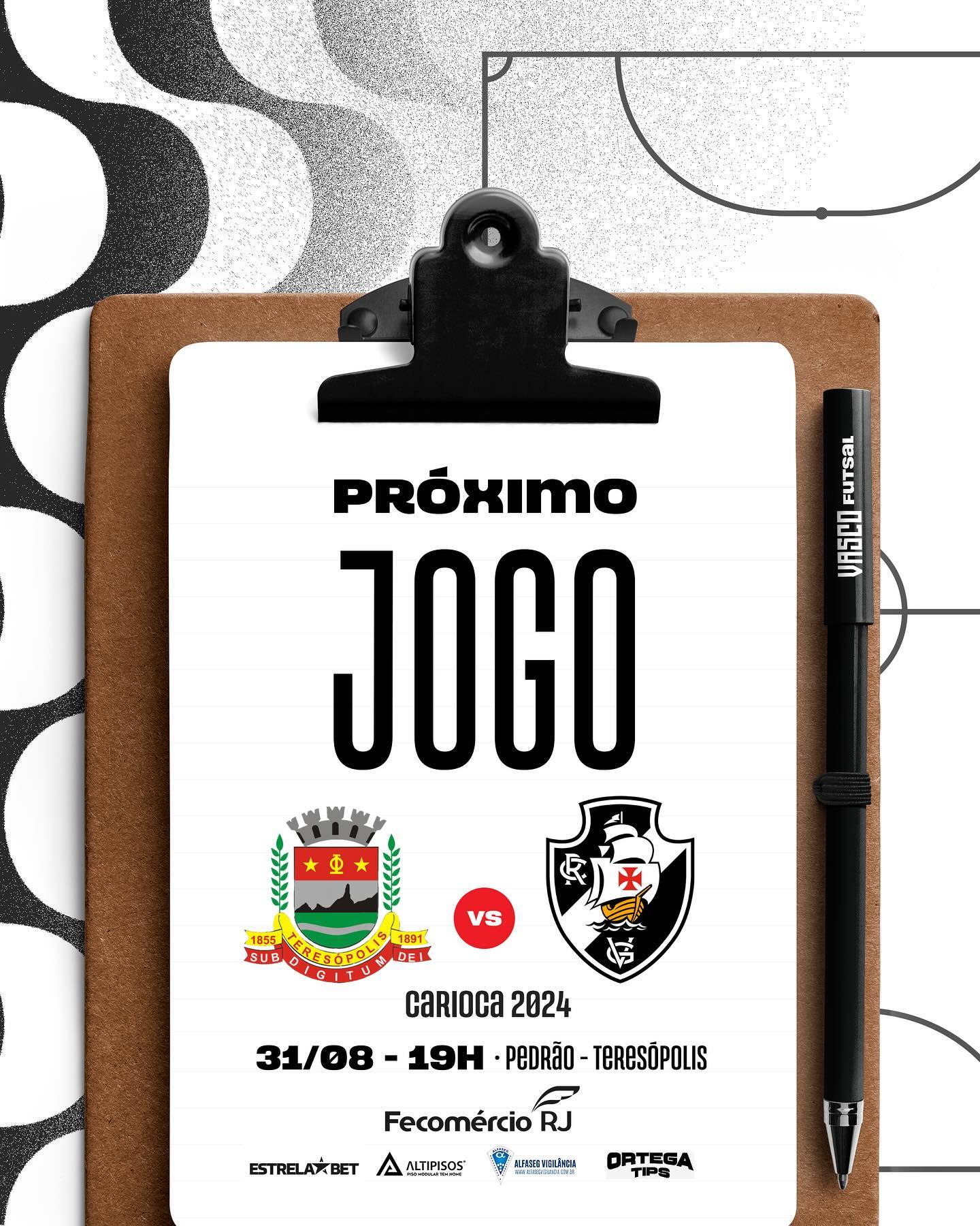 Nossa próxima partida é pelo Carioca de futsal! O 1º jogo da semifinal, contra o Teresópolis, acontece no próximo sábado (31/08), às 19h, no Ginásio Pedrão! 🏟️