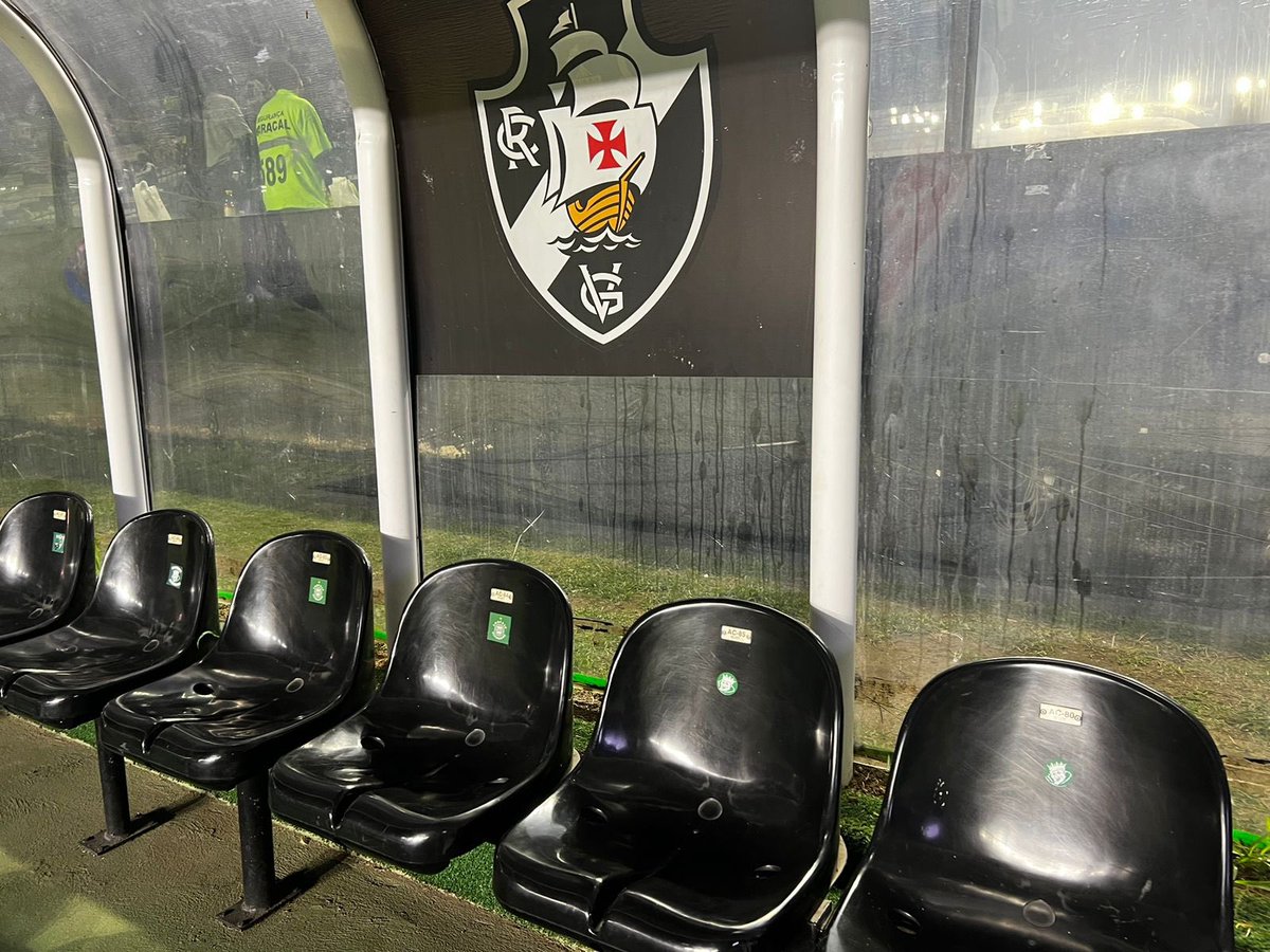 Adesivos do Coritiba foram colados no banco de reservas do Athletico-PR em São Januário