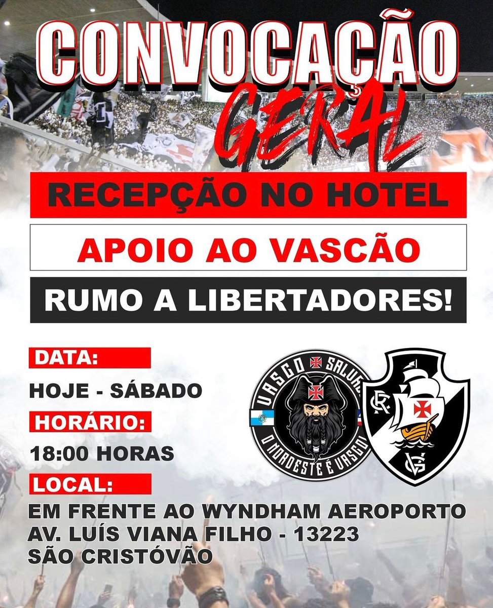 Torcida vascaína prepara recepção aos jogadores no hotel aqui em Salvador.