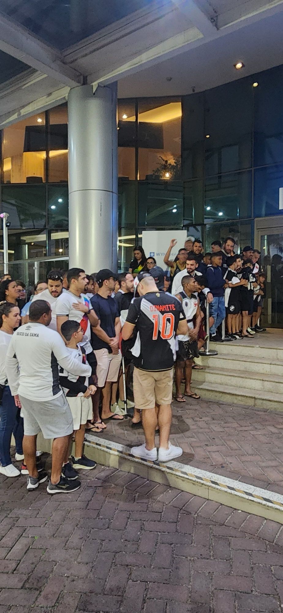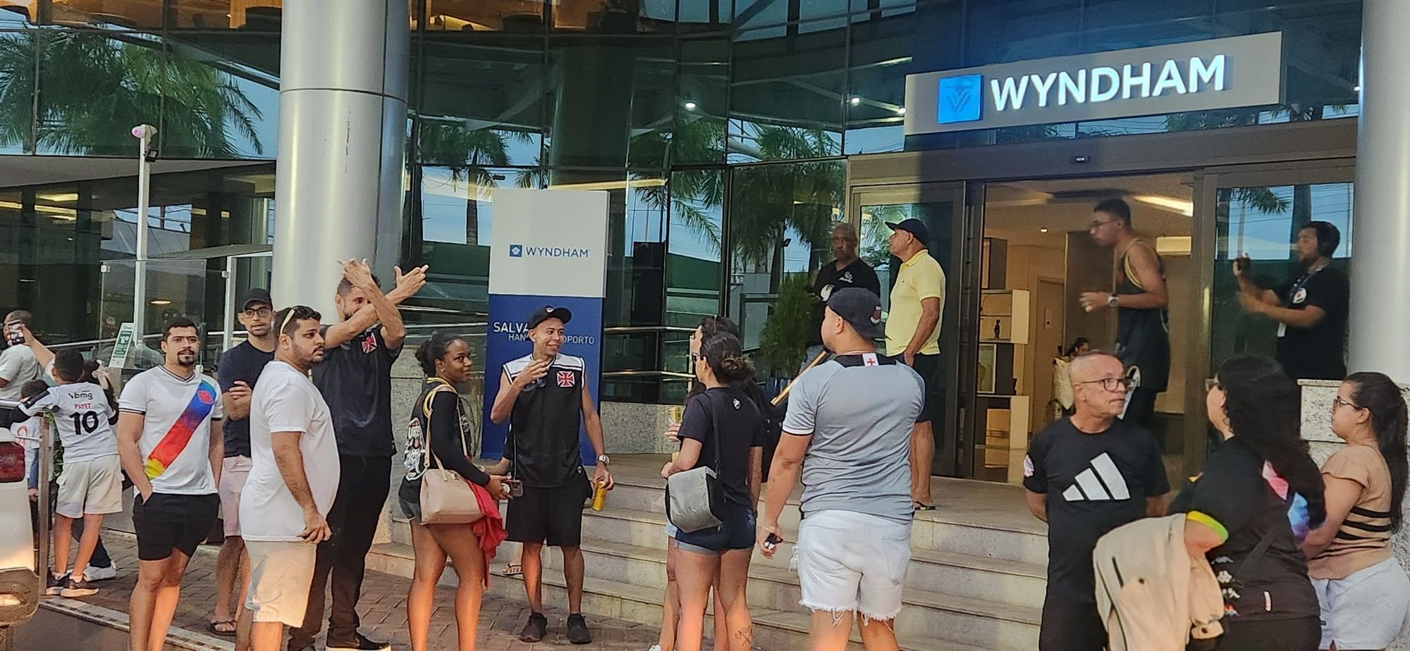 Torcedores marcam presença na porta do hotel para esperar a delegação vascaína.