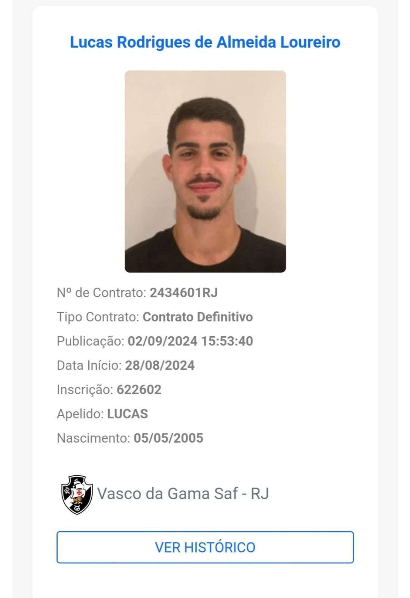 Sub-20: Filho de Felipe Maestro, Lucas é o novo reforço do Vasco