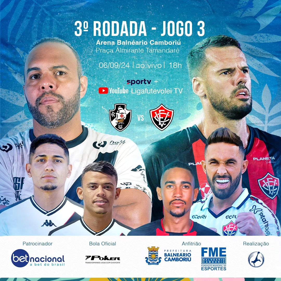 A terceira rodada da Liga Nacional de Futevôlei está chegando com tudo! No terceiro confronto, Vasco e Vitória vão medir forças em uma partida que promete muitas emoções. Fique ligado e não perca nenhum detalhe desse grande jogo nas areias!