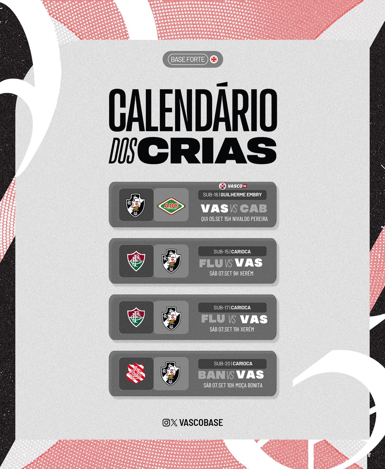 ➡️ Nesta quinta o Sub-16 encara a Cabofriense pelo Torneio Guilherme Embry, com VascoTV.