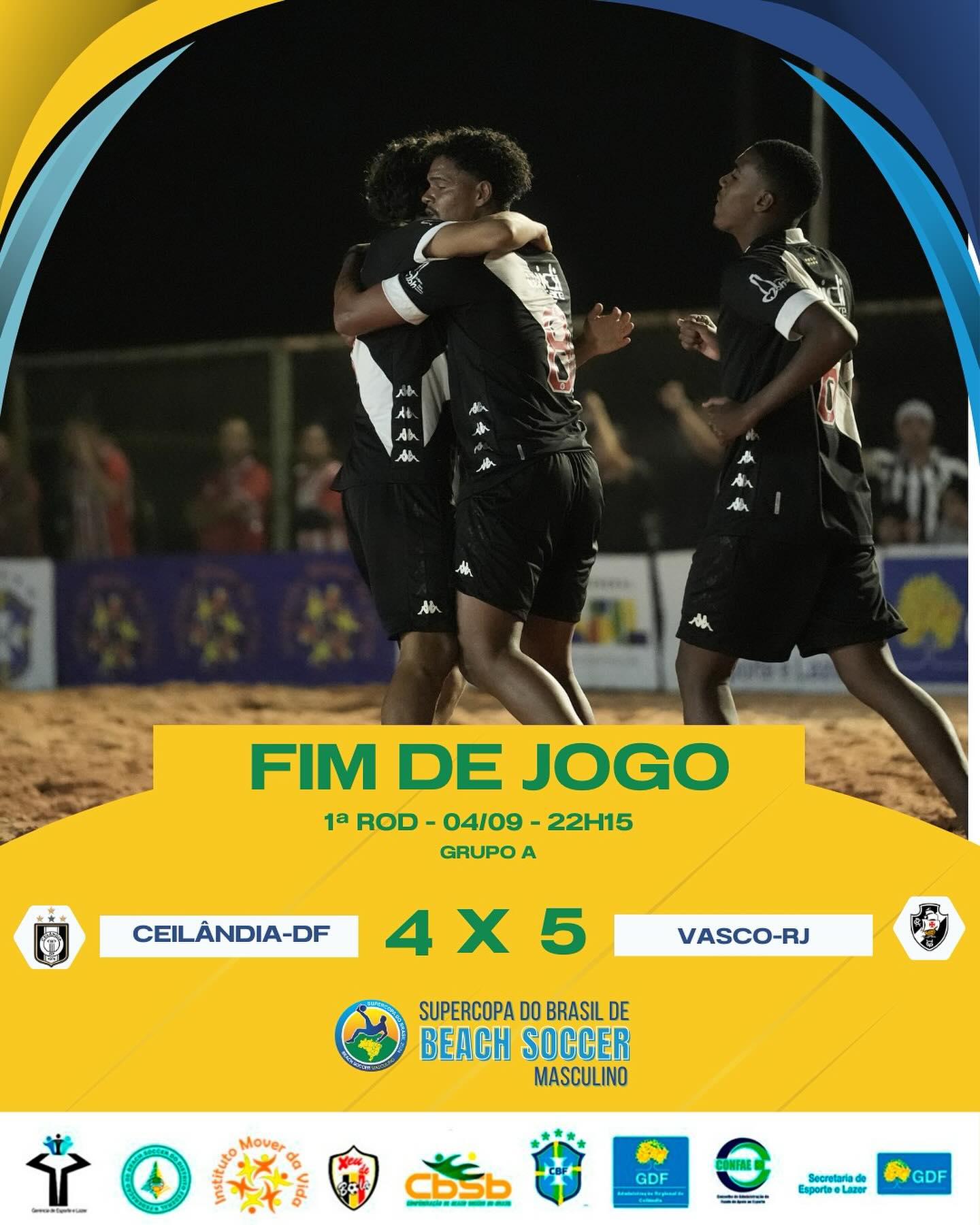 O Vasco derrotou o Ceilândia na noite desta quarta-feira por 5 a 4 pela 1ª rodada da Supercopa do Brasil de Beach Soccer.
