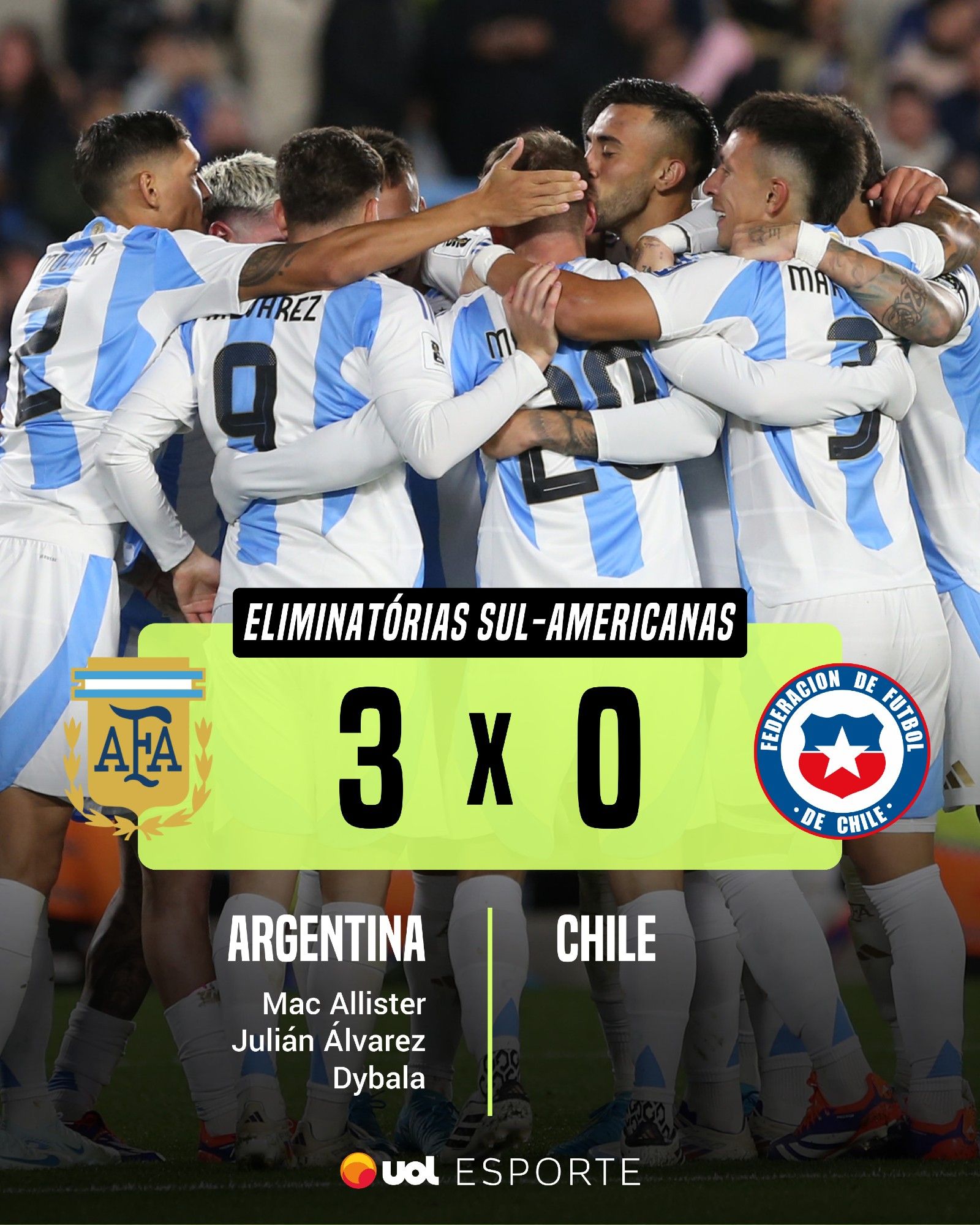 Jogando em casa, a Argentina meteu três no Chile e segue ISOLADA na liderança das Eliminatórias Sul-Americanas da Copa do Mundo!