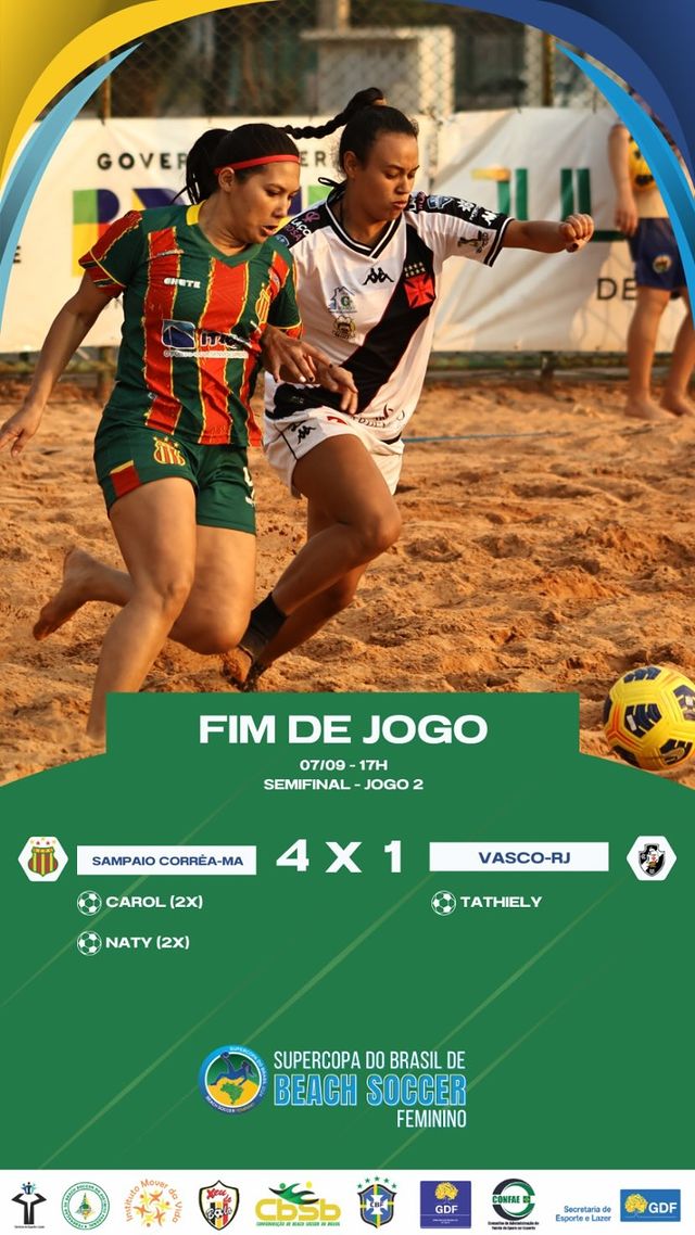 07/09/24 - Beach Soccer Feminino: Assista a Sampaio Corrêa x Vasco, pela semifinal da Supercopa do Brasil