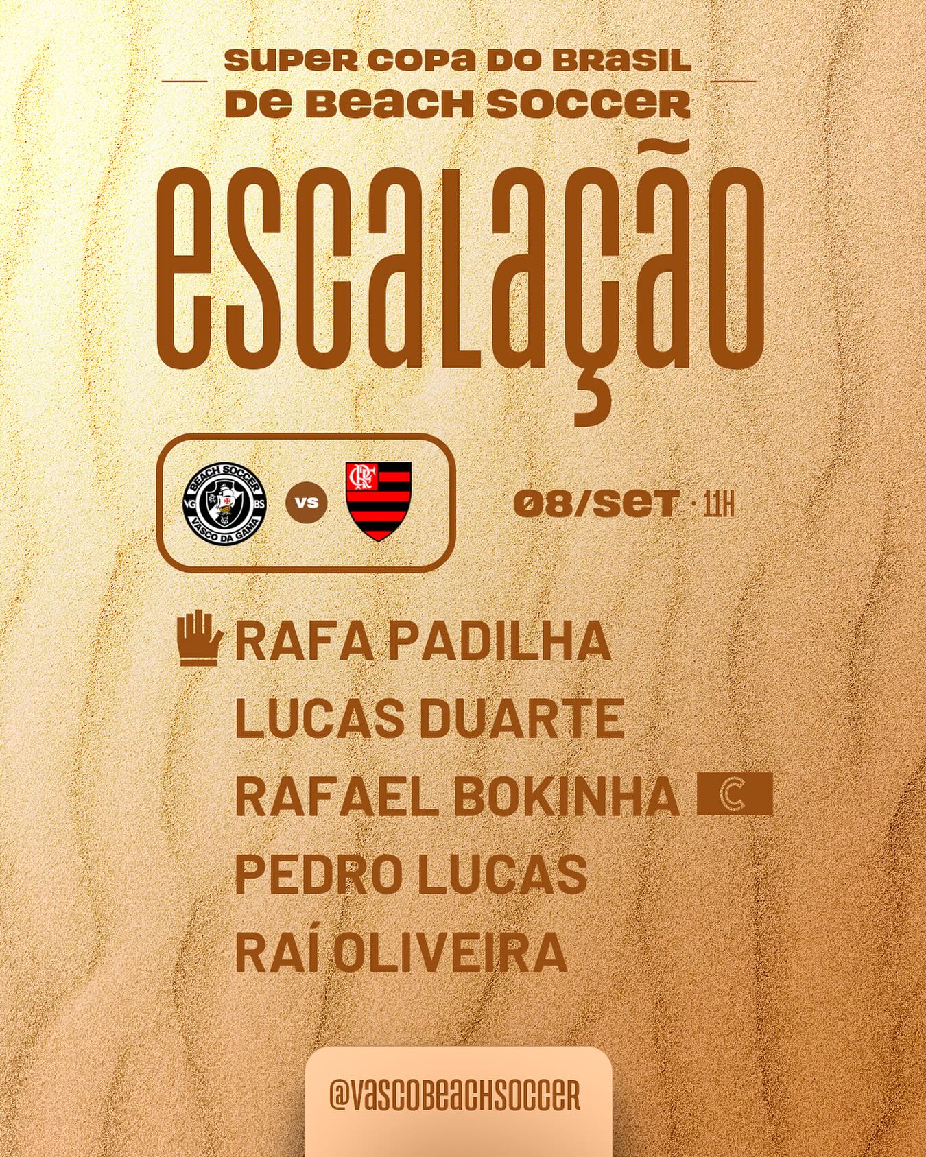 07/09/24 - Beach Soccer: Confira a escalação do Vasco para o jogo contra o Vitória