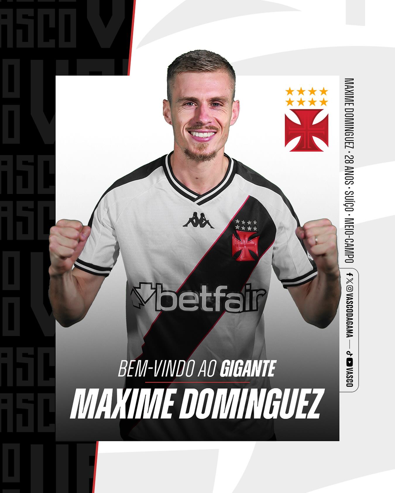 Veja como o Vasco anunciou a contratação de Maxime Dominguez nas redes sociais