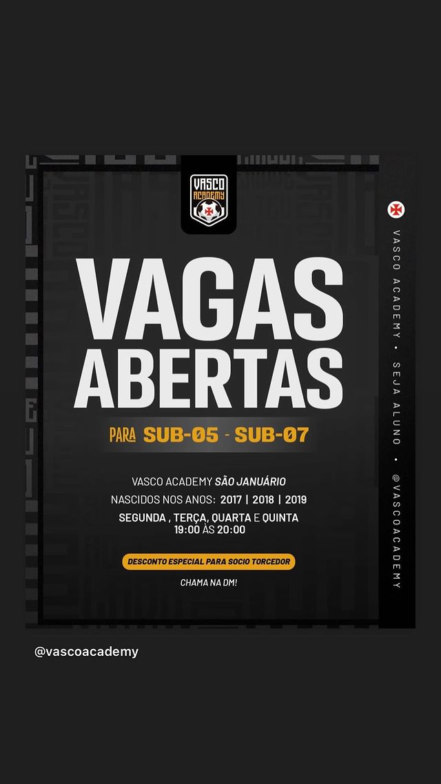 Vasco Academy anuncia vagas abertas para Sub-05 e Sub-07