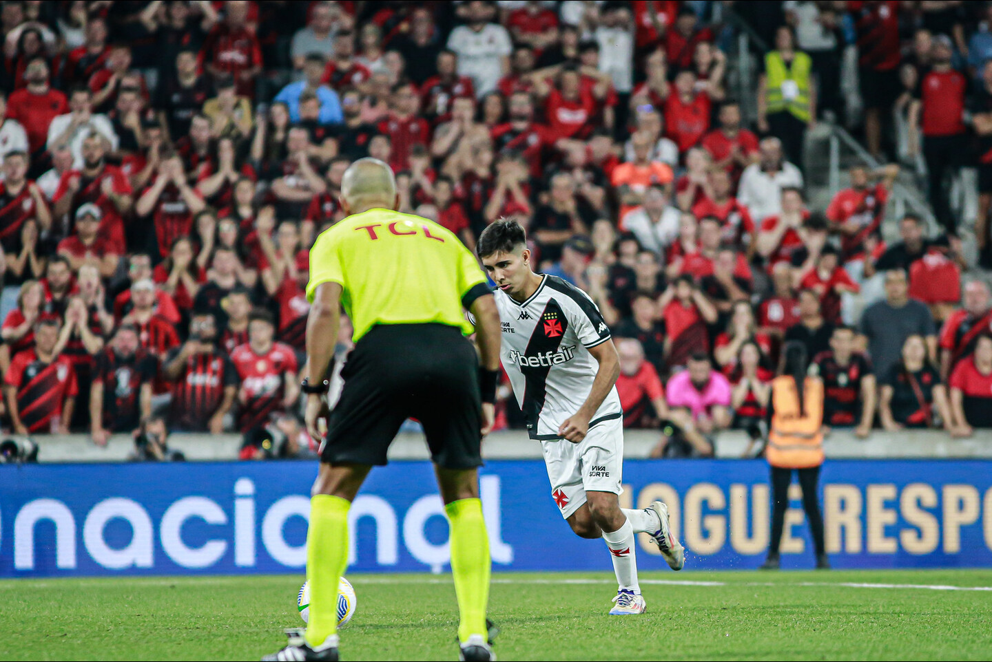 O jogo na Ligga Arena começou animado. Com cinco minutos, cada lado já havia ameaçado uma vez. O Vasco, em contra-ataque com Rayan, que chutou por cima. O Athletico, em boa jogada de Zapelli, que parou em Léo Jardim.