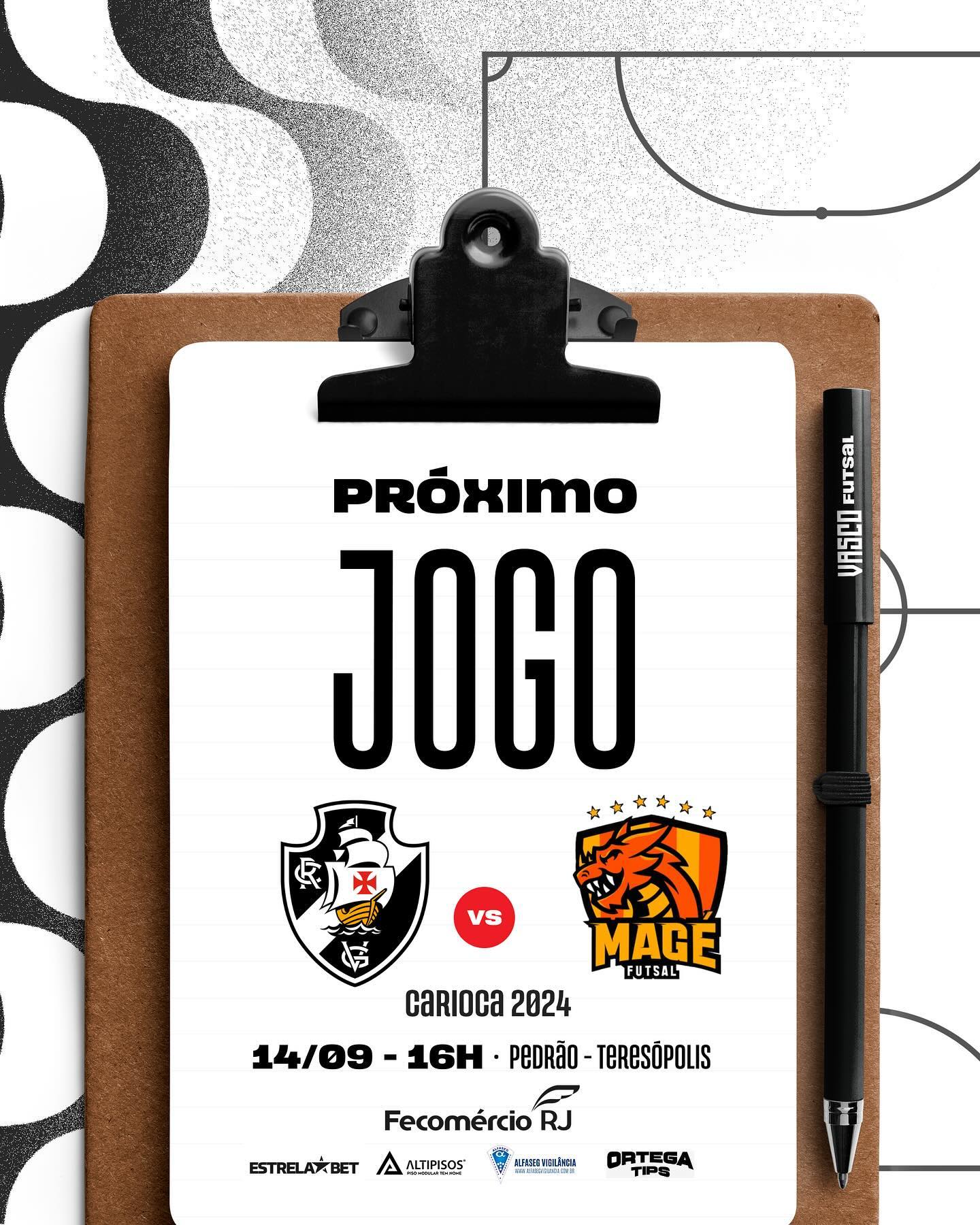 Neste sábado, 14/09, o Vasco entra em quadra contra o Magé pela FINAL do Carioca de futsal! O jogo será no Ginásio Pedrão, em Teresópolis, às 16h. 🏟️