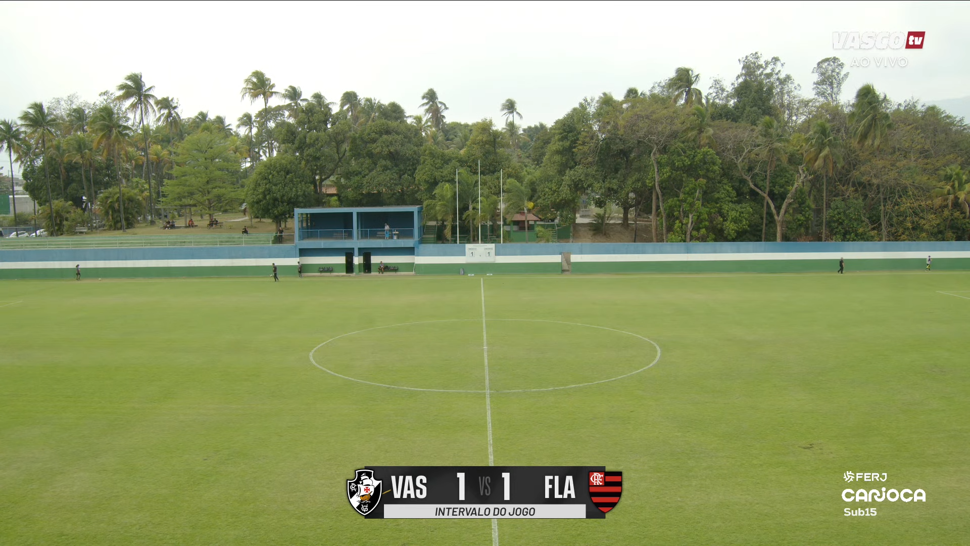 Pelo Carioca Sub-15, o Vasco vai empatando com o Flamengo por 1 a 1 no Nivaldo Pereira. Lucas Ovídio marcou o gol do Vasco aos 33 minutos.