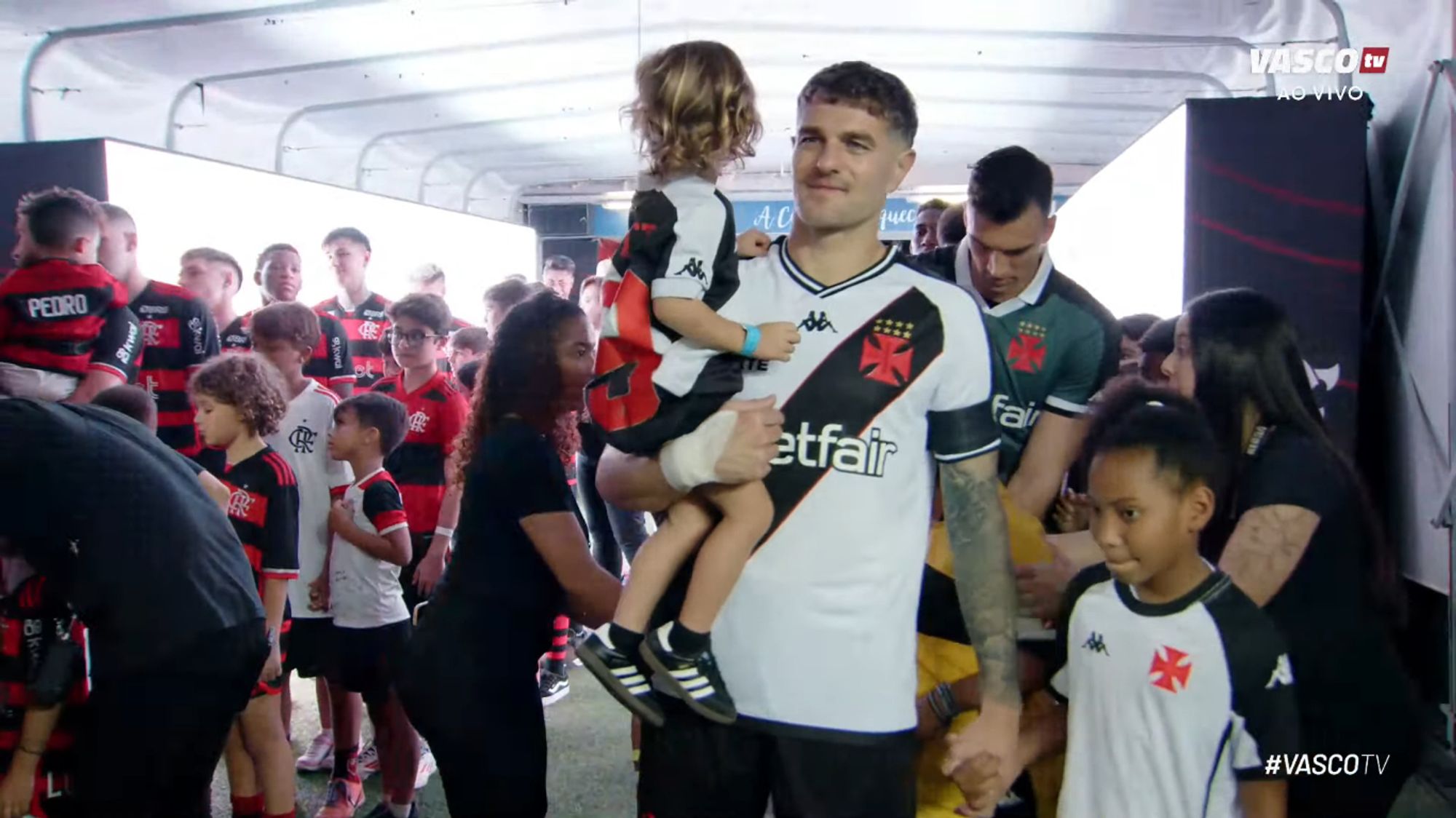 Vegetti leva seu filho no colo no túnel de acesso ao gramado do Maracanã; veja