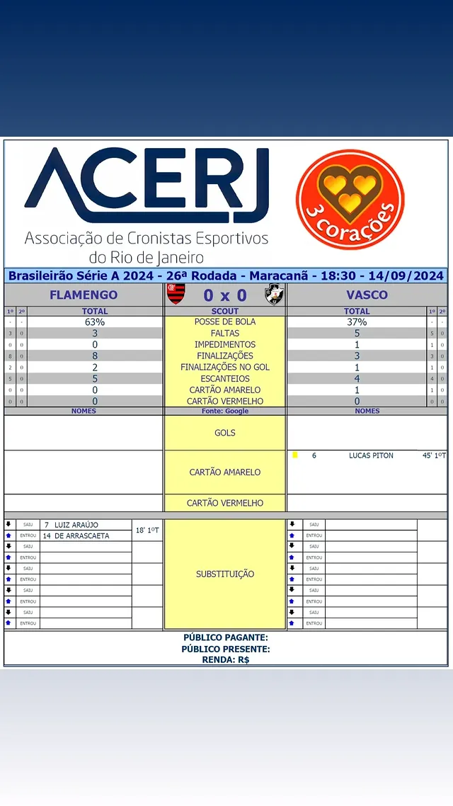 15/09/24 - Veja a escalação do Urubu para o jogo contra o Vasco