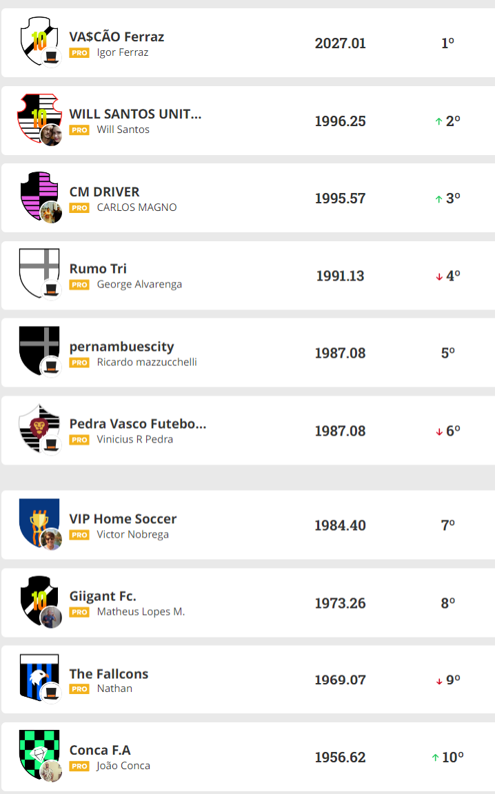 28/08/24 - Cartola: Confira a classificação da Liga NETVASCO após a 24ª rodada