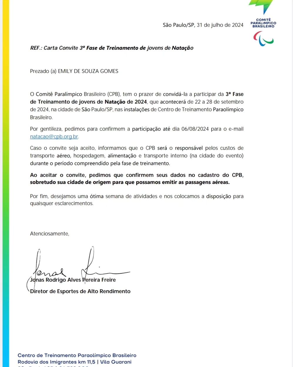 Natação Paralímpica: Atleta do Vasco, Emily Gomes é convocada para treinos do CPB em São Paulo