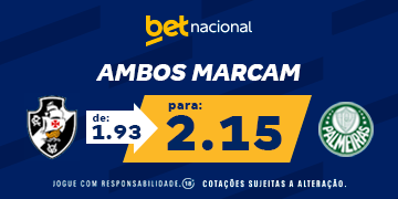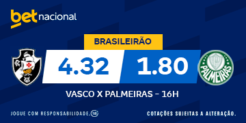 Vasco e Palmeiras se enfrentam neste domingo no Mané Garrincha pelo Campeonato Brasileiro. Confira as odds para a partida e clique nos links exclusivos abaixo para se cadastrar e apostar no jogo do Vasco.