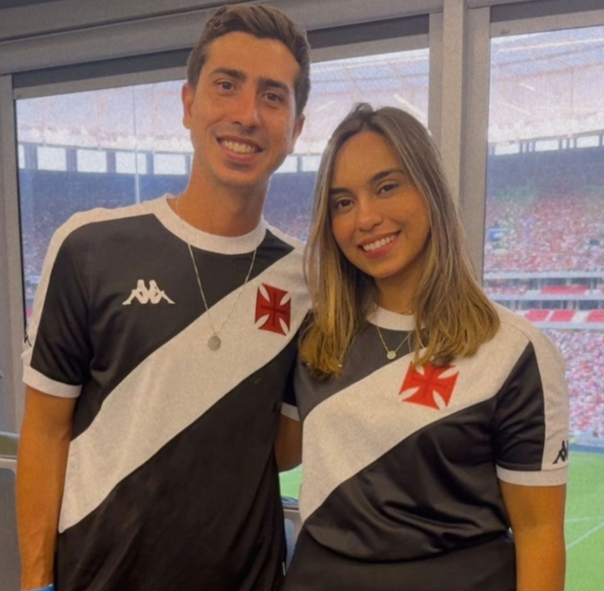 Ele compartilhou com o público a imagem de quando pediu sua esposa em namoro em um jogo do Gigante.