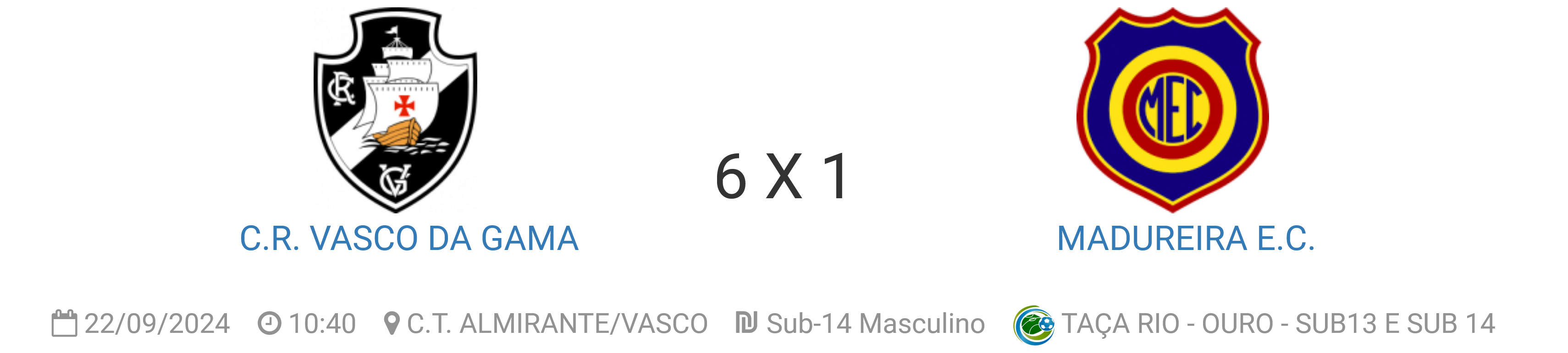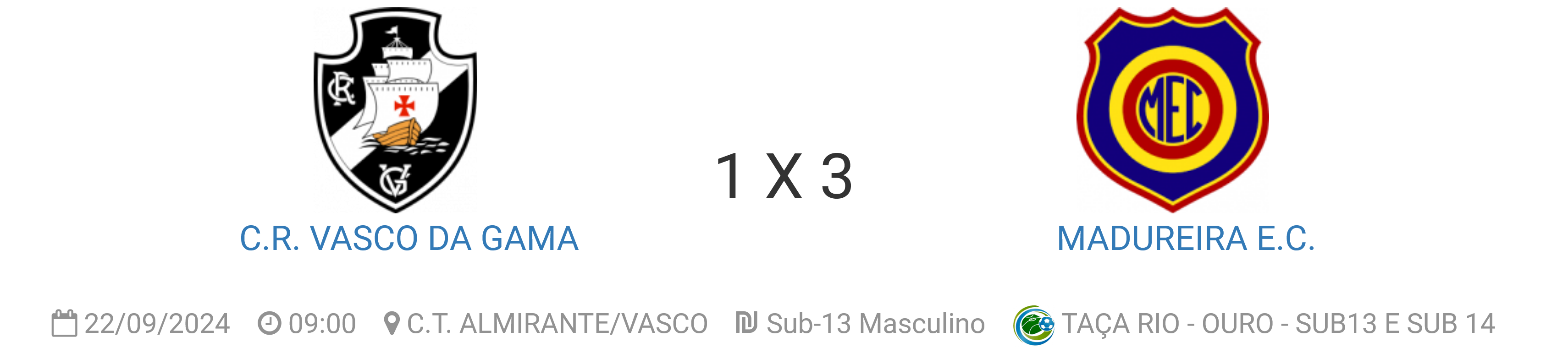 09/09/24 - Pela Taça Rio, Vasco goleia o Madureira por 6 a 1 no Sub-09 e empata por 2 a 2 no Sub-10