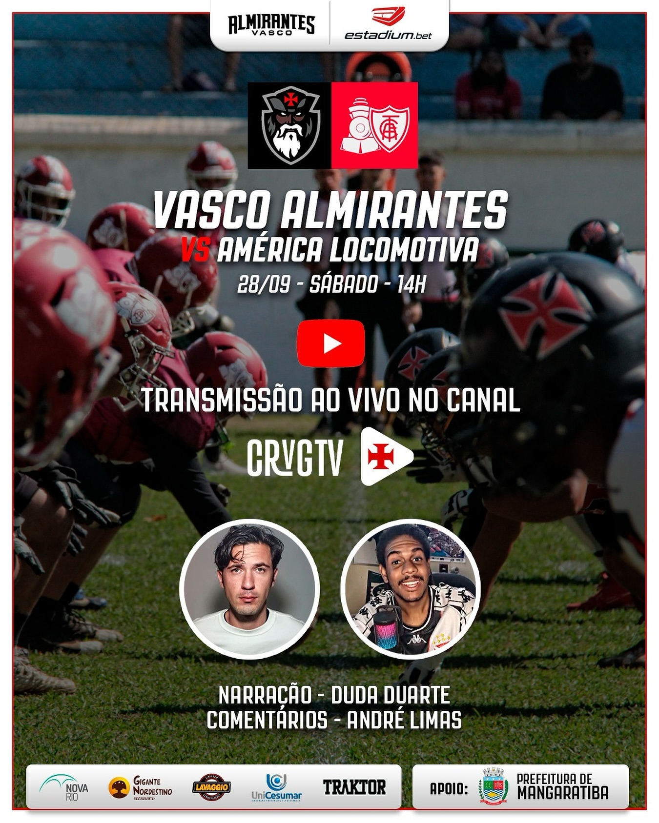 Vai rolar transmissão no sábado!!! Com narração do Duda Duarte e comentários de André Limas pra você acompanhar cada detalhe desse grande jogo contra o América Locomotiva.