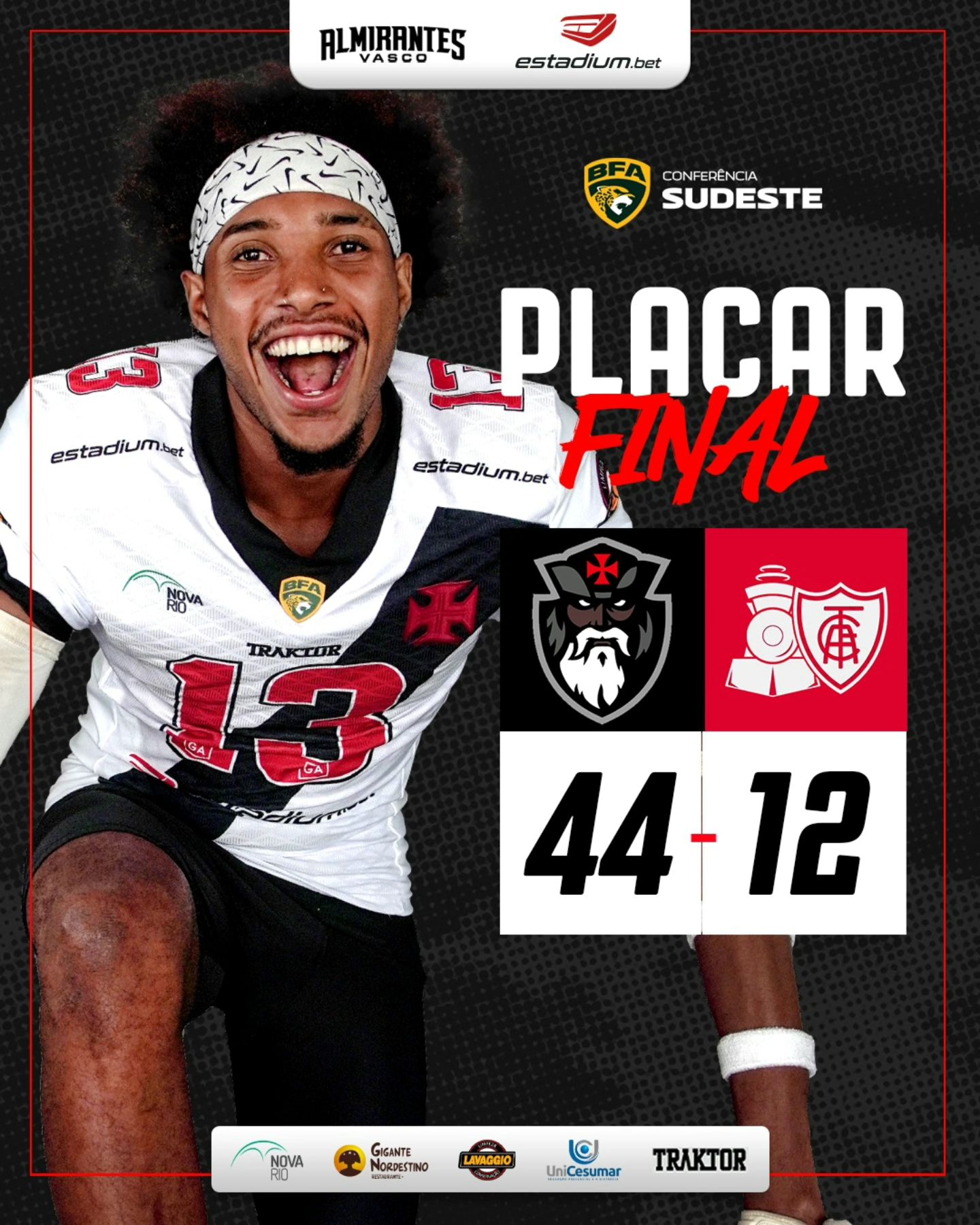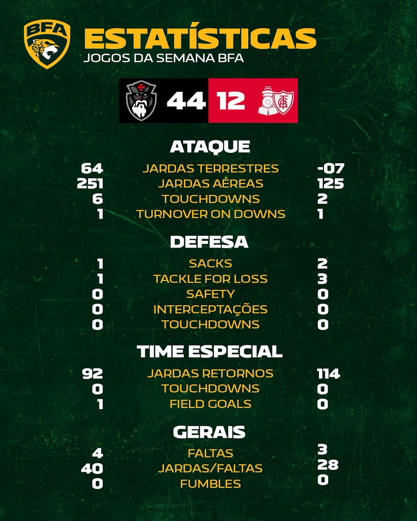 📊 Stats da partida entre Vasco Almirantes x América Locomotiva, que classificou o Vasco para a final do Sudeste Bowl