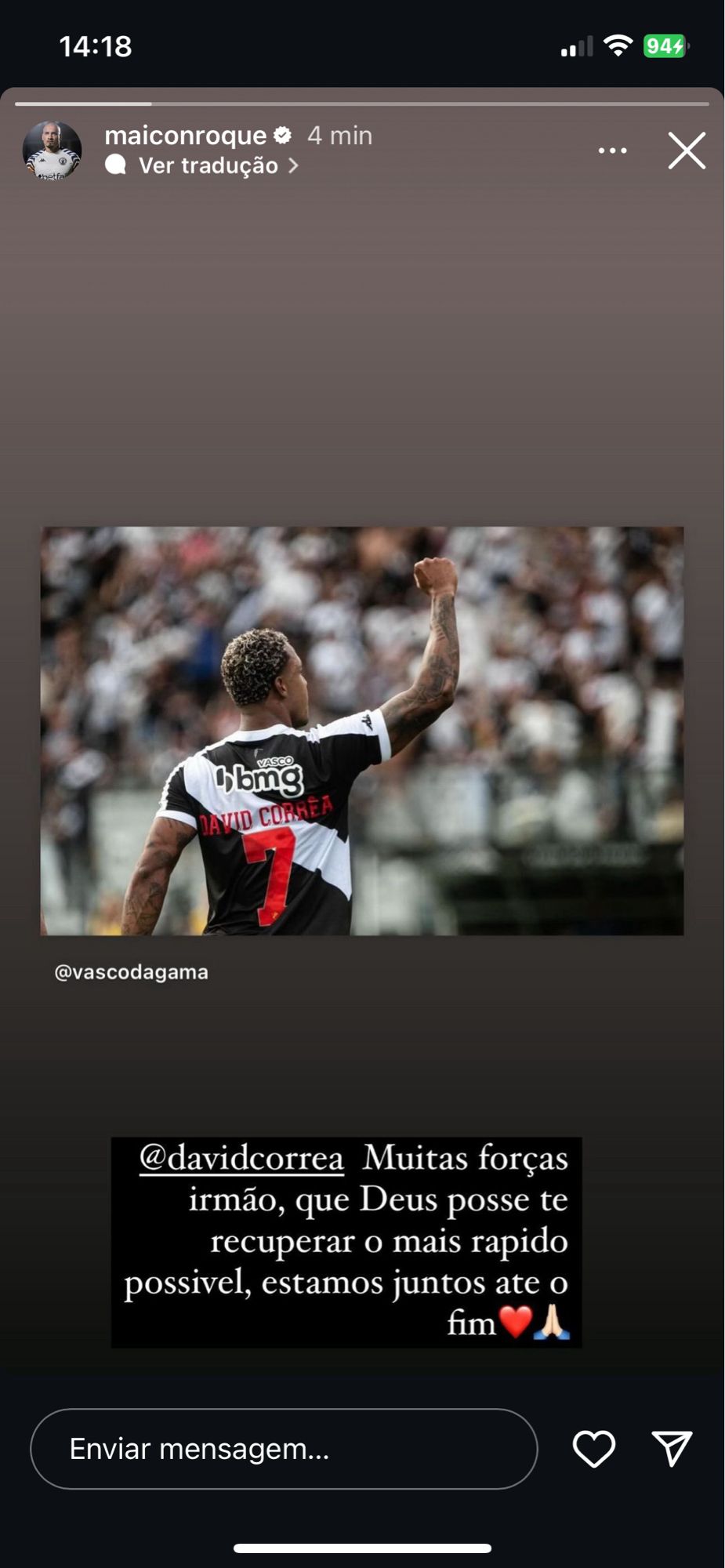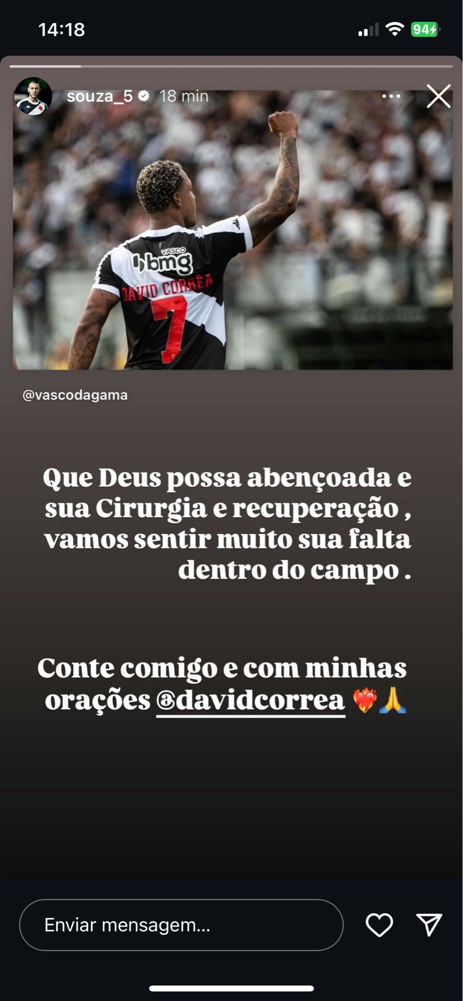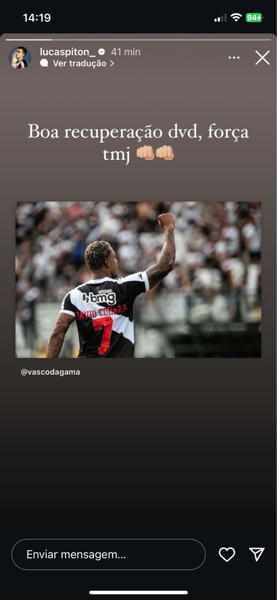 🙏 Jogadores do plantel vascaíno mandam suas energias positivas para a recuperação do atacante David.