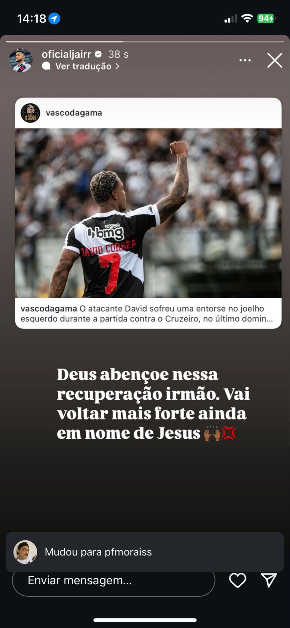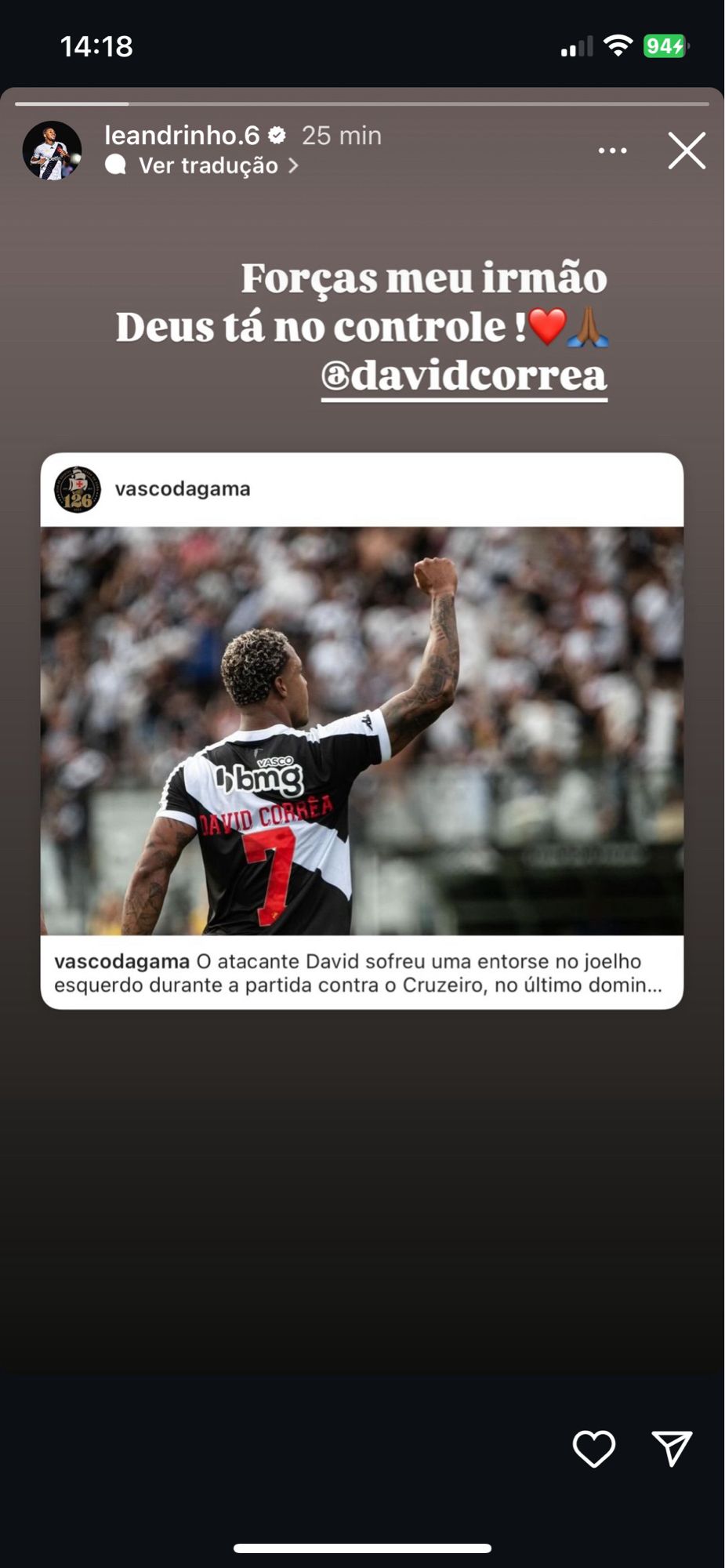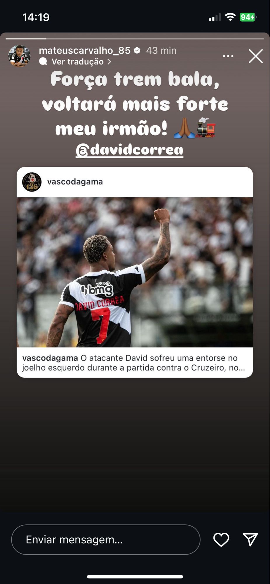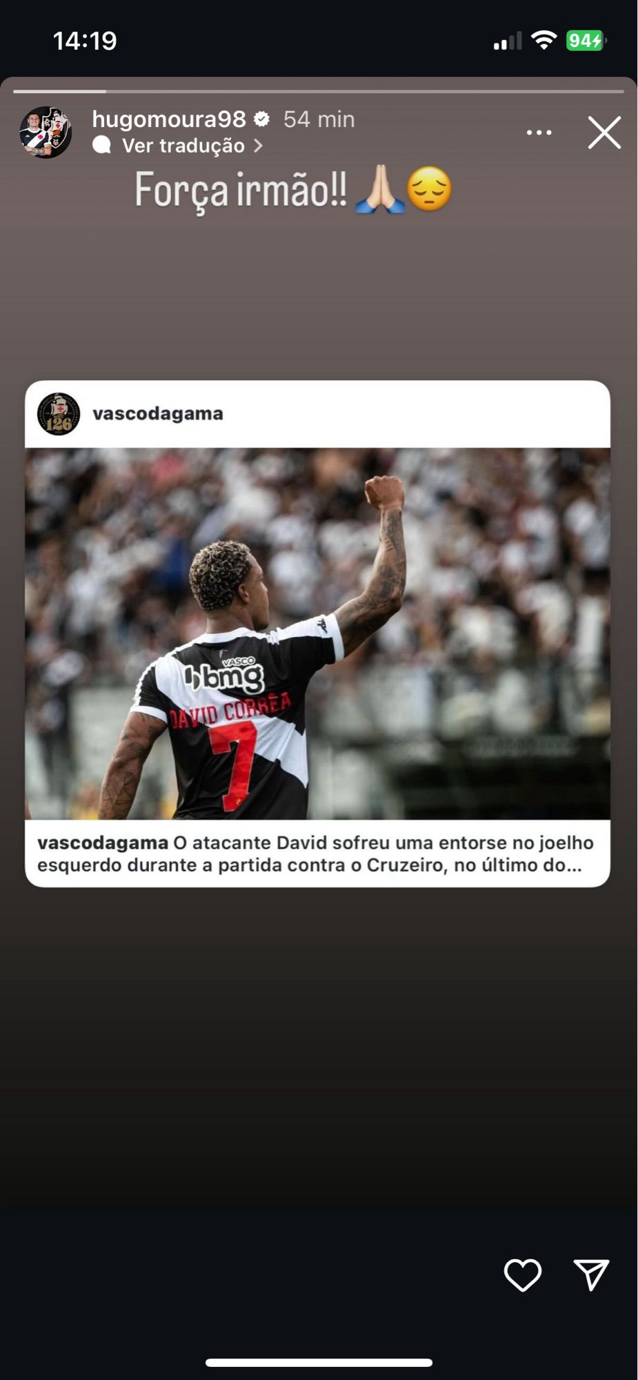 🙏 Jogadores do plantel vascaíno mandam suas energias positivas para a recuperação do atacante David.