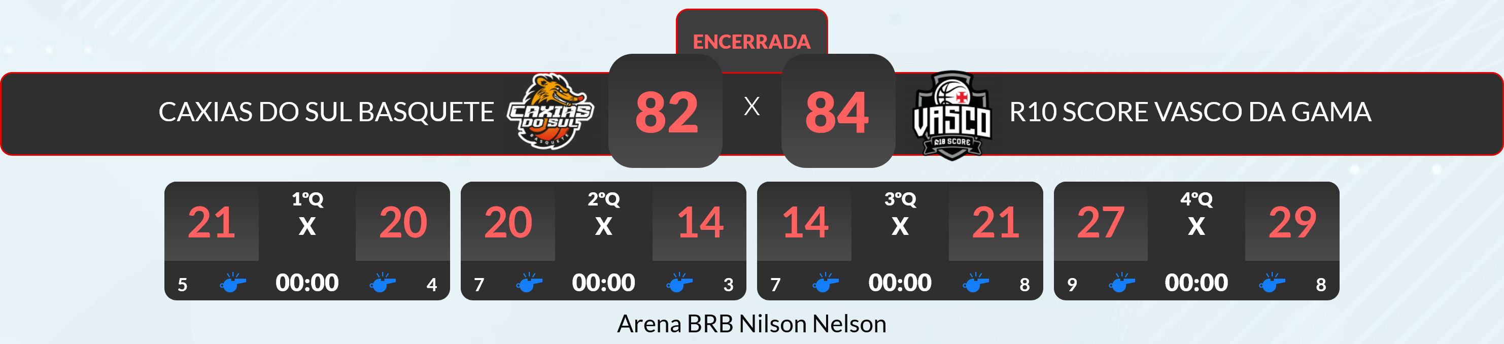 Vasco e Caxias do Sul fizeram um duelo bastante movimentado em Brasília, na tarde desta segunda-feira. O jogo, válido pelo torneio preparatório do NBB, colocou frente a frente duas equipes postulantes a vagas nos playoffs da próxima temporada da competição, marcada para começar no dia 12 de outubro. Os cariocas começaram mal o jogo, chegaram a estar perdendo por 14 pontos, mas conseguiram se recuperar no segundo tempo e venceram por 82 a 80.