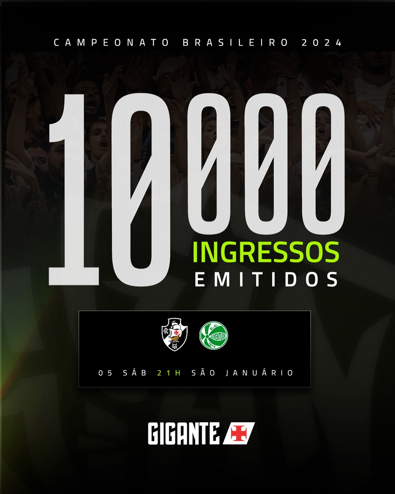 01/10/24 - Já foram emitidos 5 mil ingressos para Vasco x Juventude