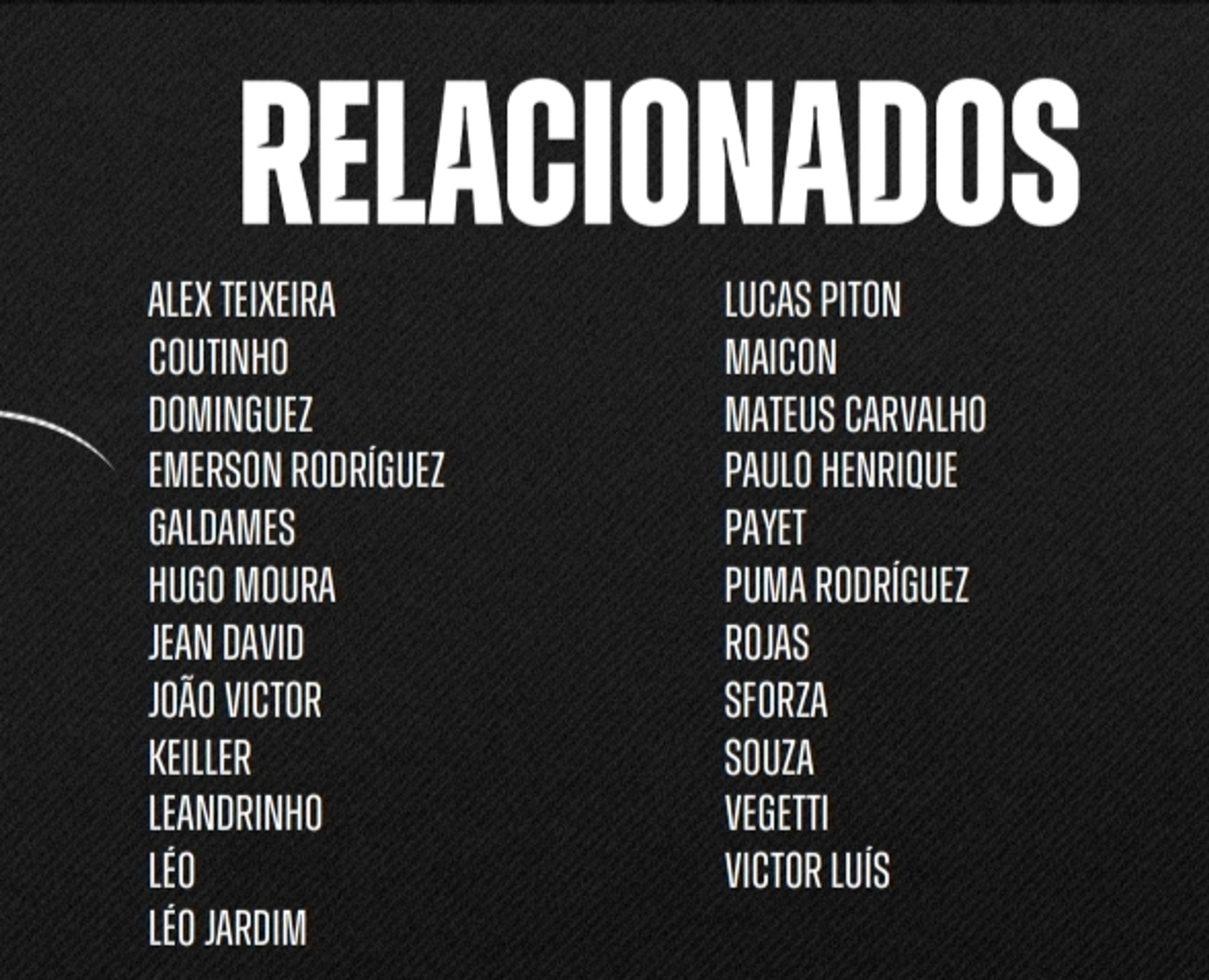 Os relacionados do Vasco para o jogo de logo mais contra o Atlético-MG, na Arena MRV, pela partida de ida das semifinais da Copa do Brasil.